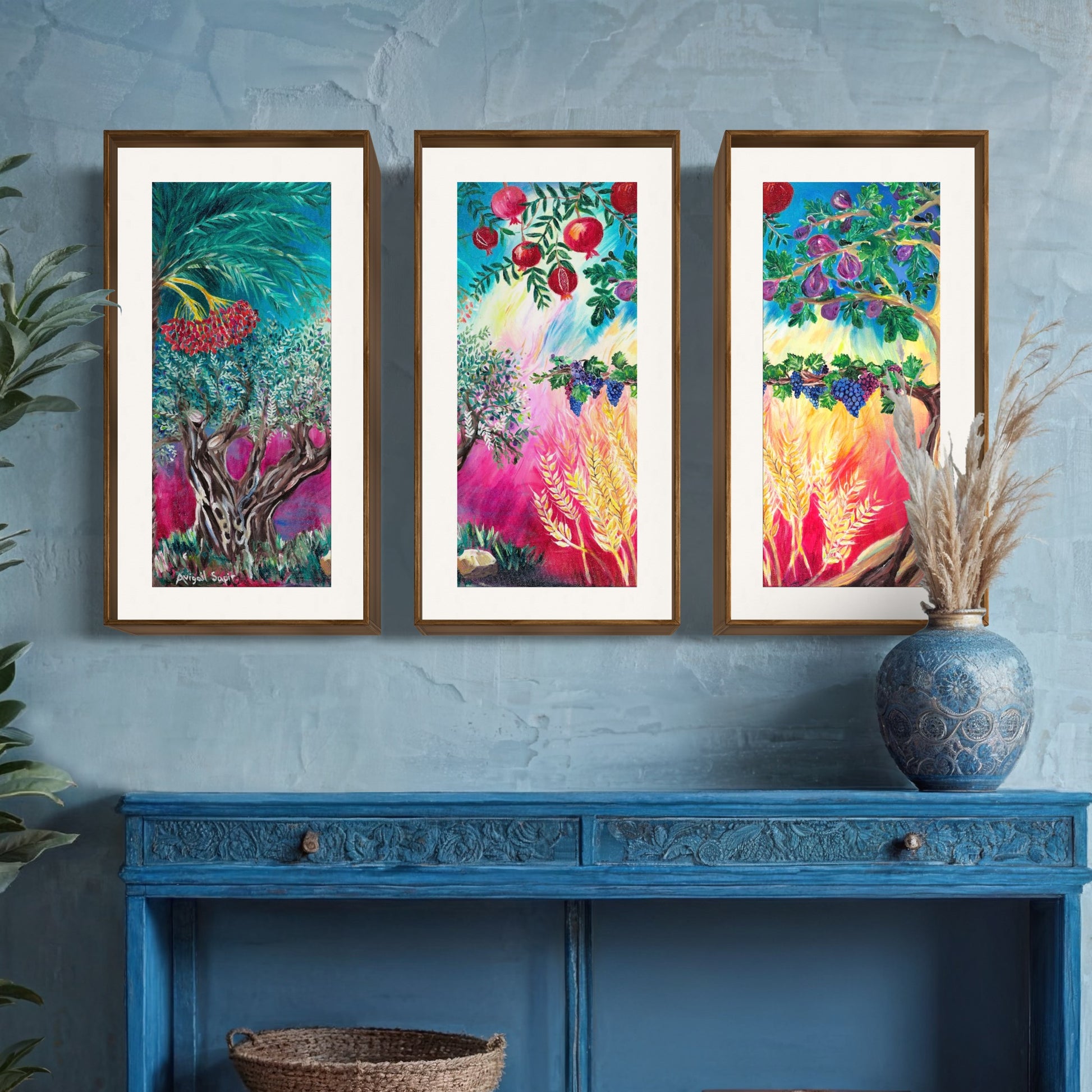 Seven Species Triptych by Avigail Sapir - Giclée Print on Fine Art Paper or Stretched Canvas Giclée