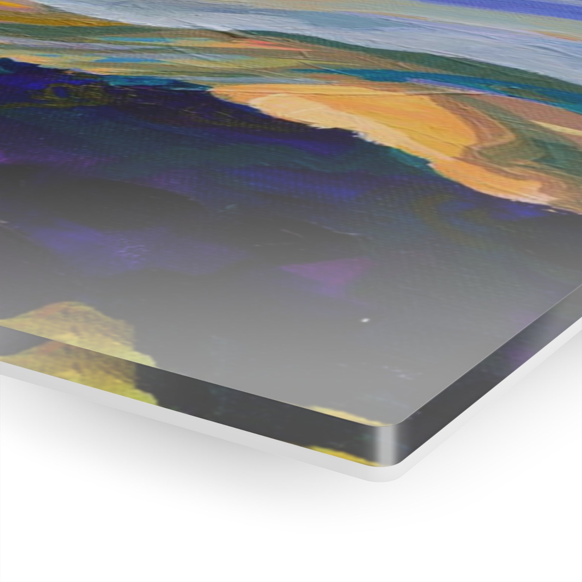 This painting by Leah Luria is printed on a glass surface, this prints never fail to dazzle. The artwork is second-surface printed directly on a 1/4" acrylic panel for a stunning result. Each acrylic print comes ready to hang and floats 1.5" off the wall.