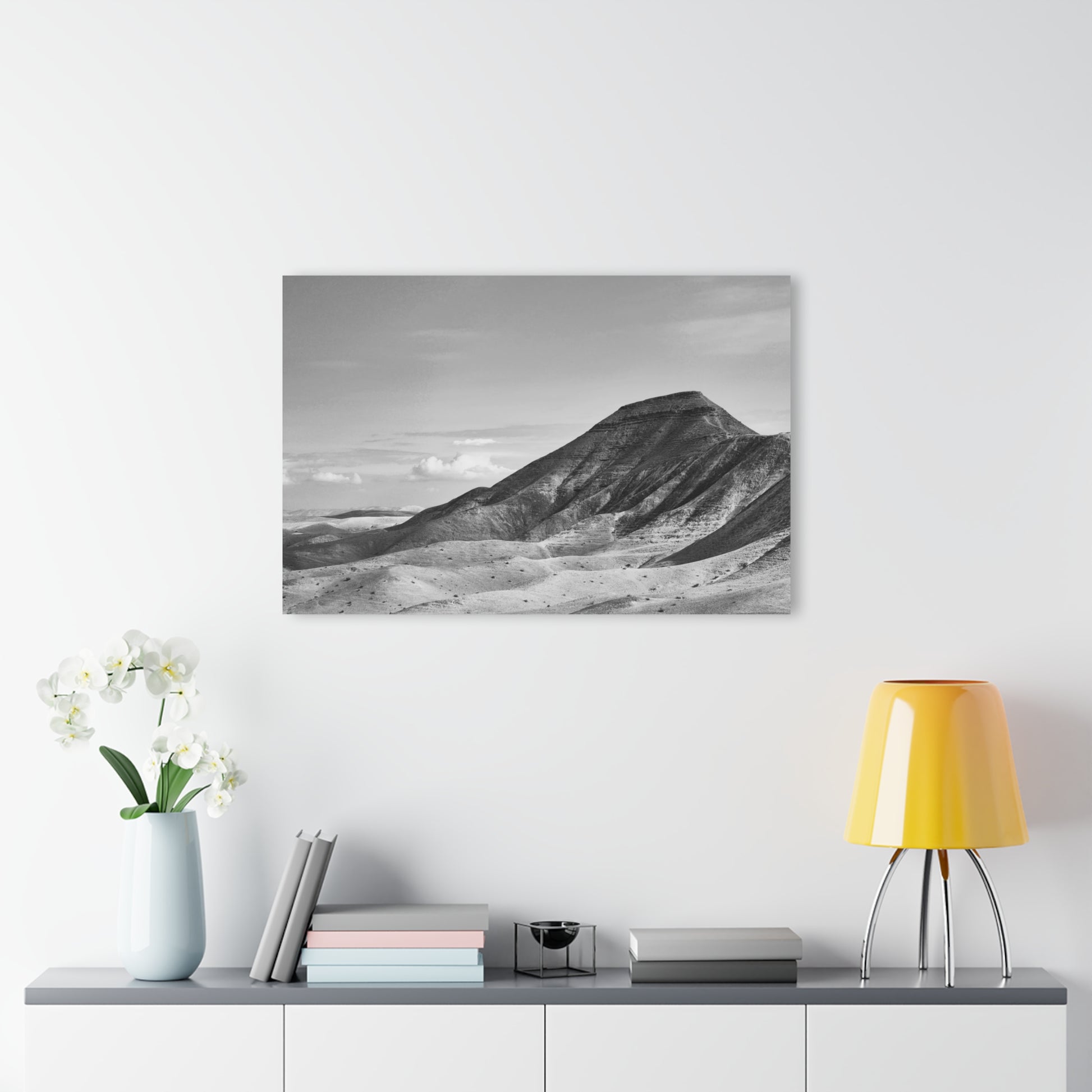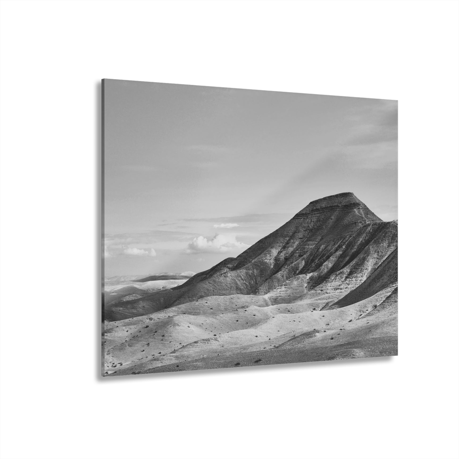 A timeless vision of the Midbar Yehuda dunes near the Dead Sea, rendered in striking black and white. Captured from horseback, the photograph transforms the desert's rolling forms into an interplay of light and shadow, emphasizing the raw textures and contours of the landscape. The absence of color evokes a sense of stillness and timelessness, inviting viewers to focus on the stark beauty and enduring spirit of the Judean Desert. This piece is both a moment of connection and a work of minimalist elegance, showcasing the desert's essence in its purest form.