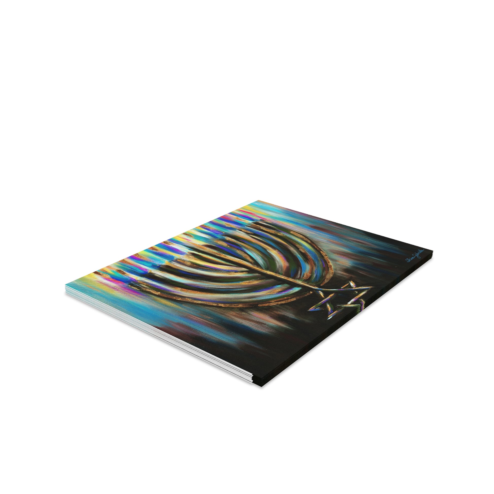 Celebrate the festival of lights with these painterly menorah Chanukah cards by Shira Gabriela. Reminding us to spread the light, these vibrant cards are perfect for sending warm wishes to friends and family during the holiday season. Relevant to those celebrating Chanukah and looking to share meaningful messages.