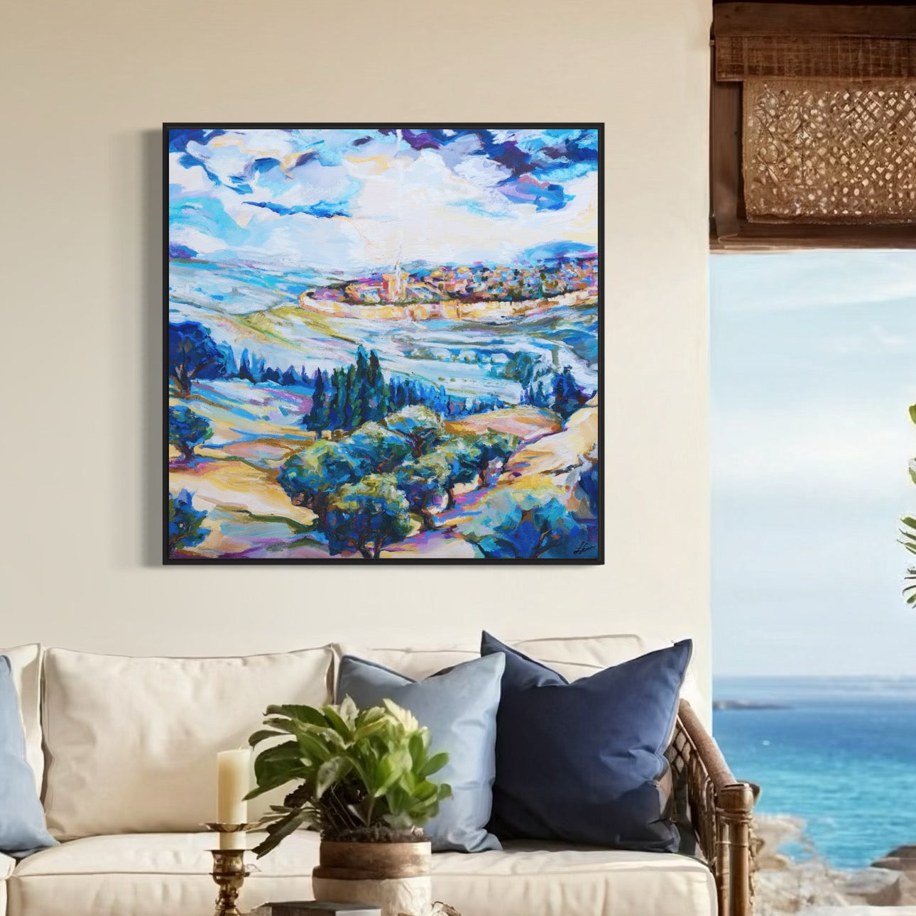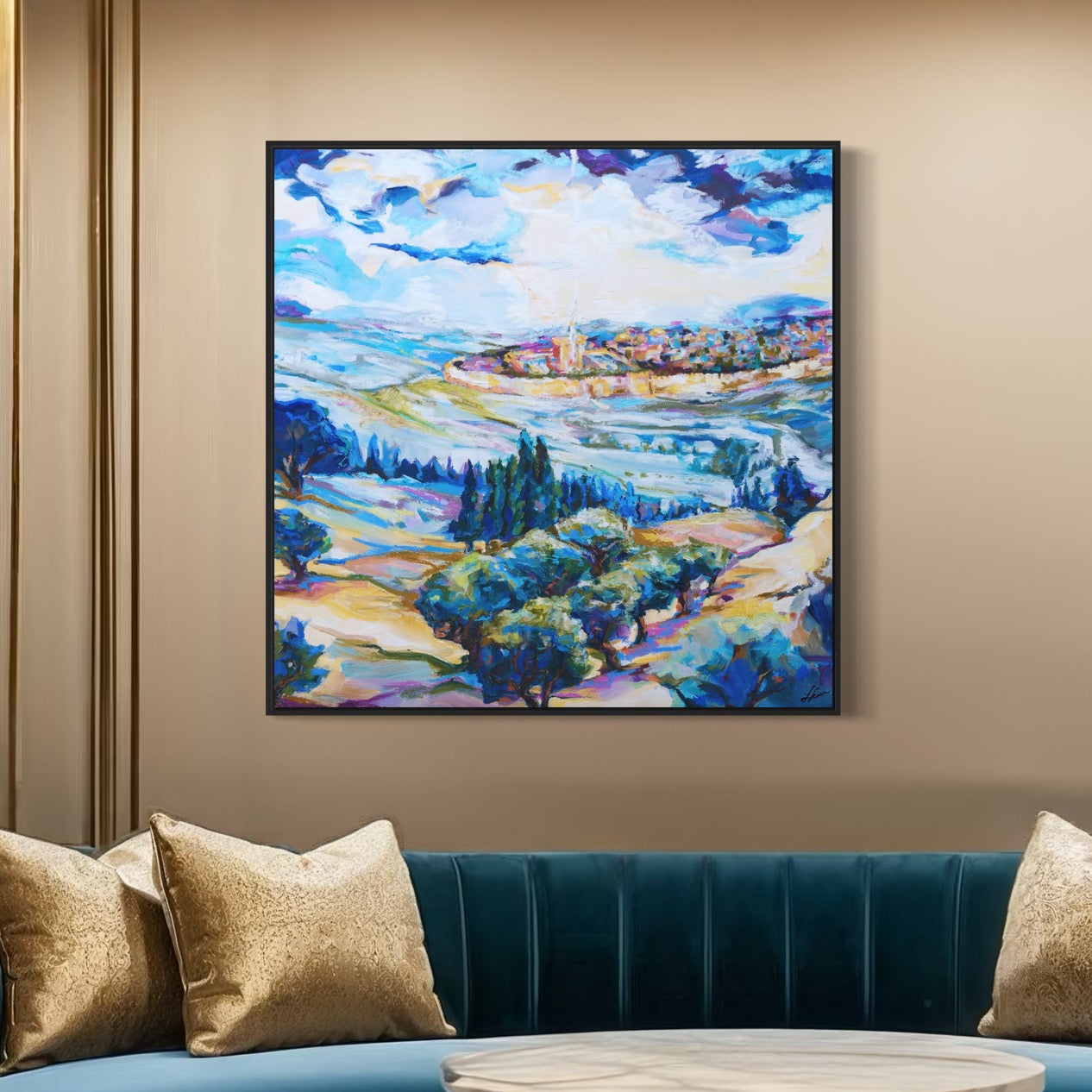 In these messianic times, it is more important than ever to visualize the Third Temple's rebuilding as part of our spiritual service. This artwork aims to awaken global consciousness and inspire hearts to see redemption as something already within our reach. Let’s bring the future into the present together with this new mixed-media painting, created in Israel by Leah Luria.