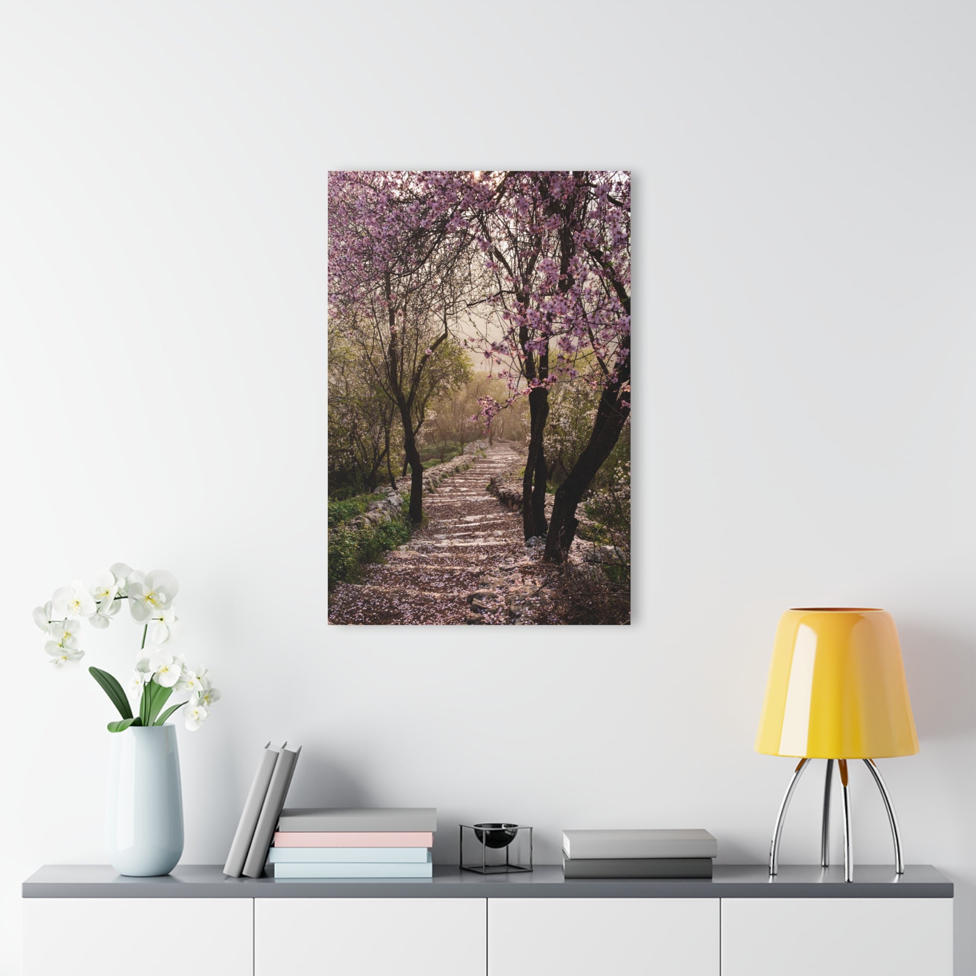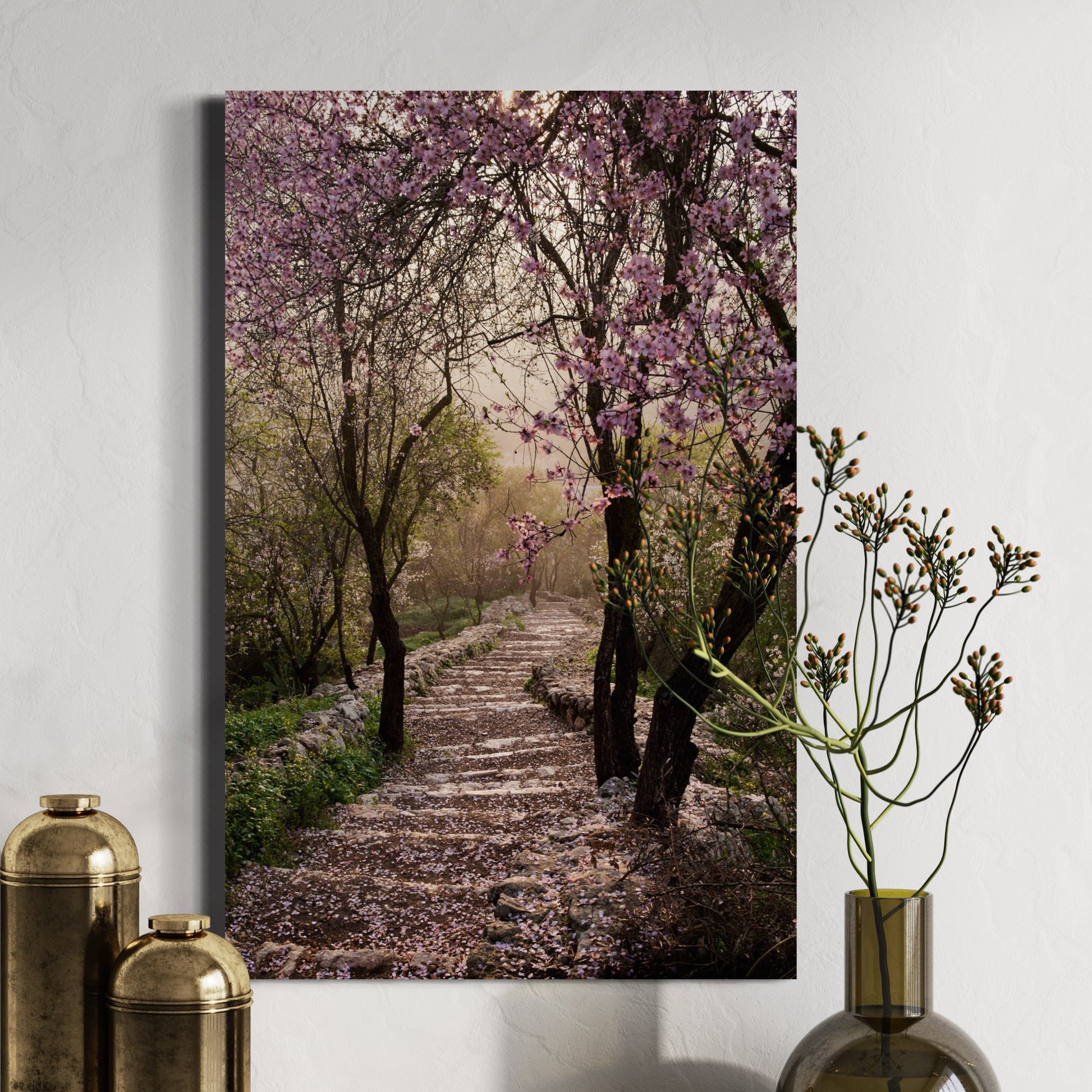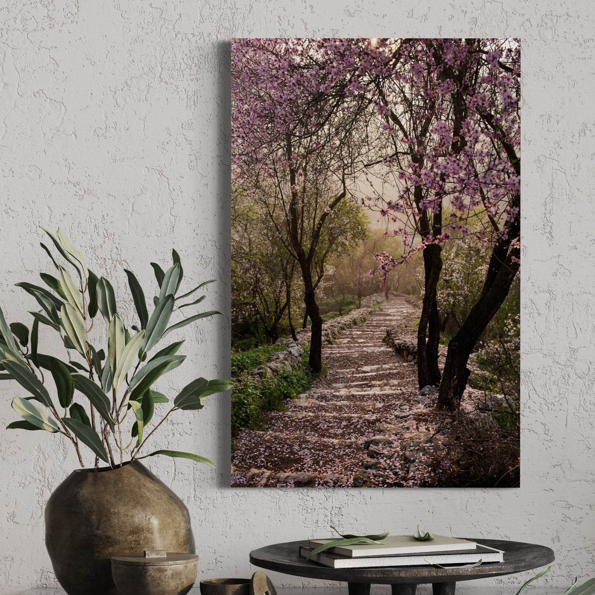 Step into the mystique of the Judean Mountains at the height of the springtime blossoming of almond trees. This flowery photograph features a wooded path delicately adorned with fallen pastel almond blossom petals as it winds its dreamy way through the Sataf Nature Reserve near Jerusalem. Made to bring art-gallery quality to exhibiting artwork in any space, this acrylic prints is the perfect means to showcase photography and art to the world. This prints are water-resistant and effortless to maintain clean like new thanks to their 0.25"-thick, Grade-A acrylic material. Each print comes with a French cleat backing and installation screws, for easy and secure hanging.