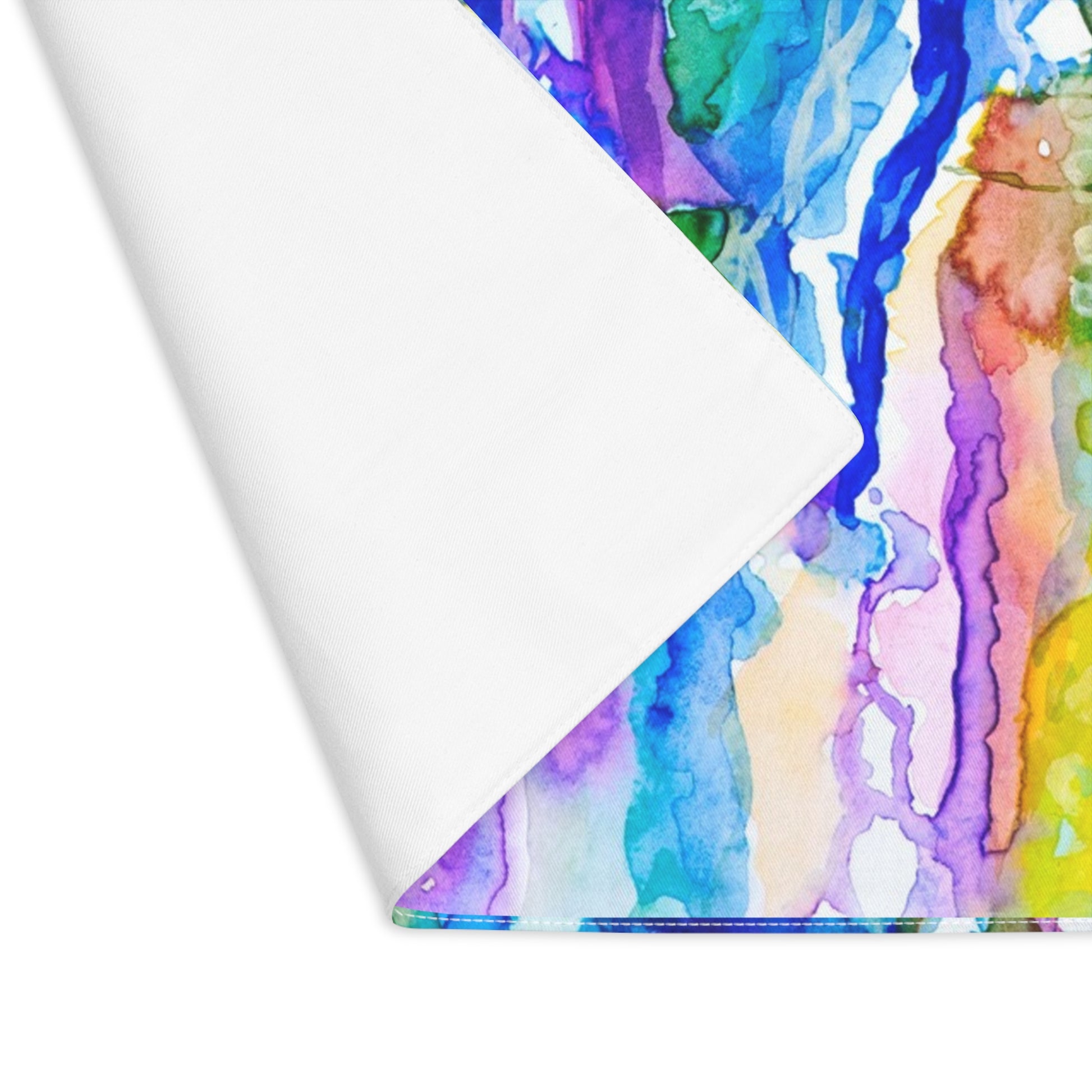 Transform your Shabbat table with the "Flow with the Universe Challah Cover" by Avigail Sapir, featuring vibrant, dreamy watercolor designs. This exquisite cover brings a splash of color and artistry to your Shabbat table.
