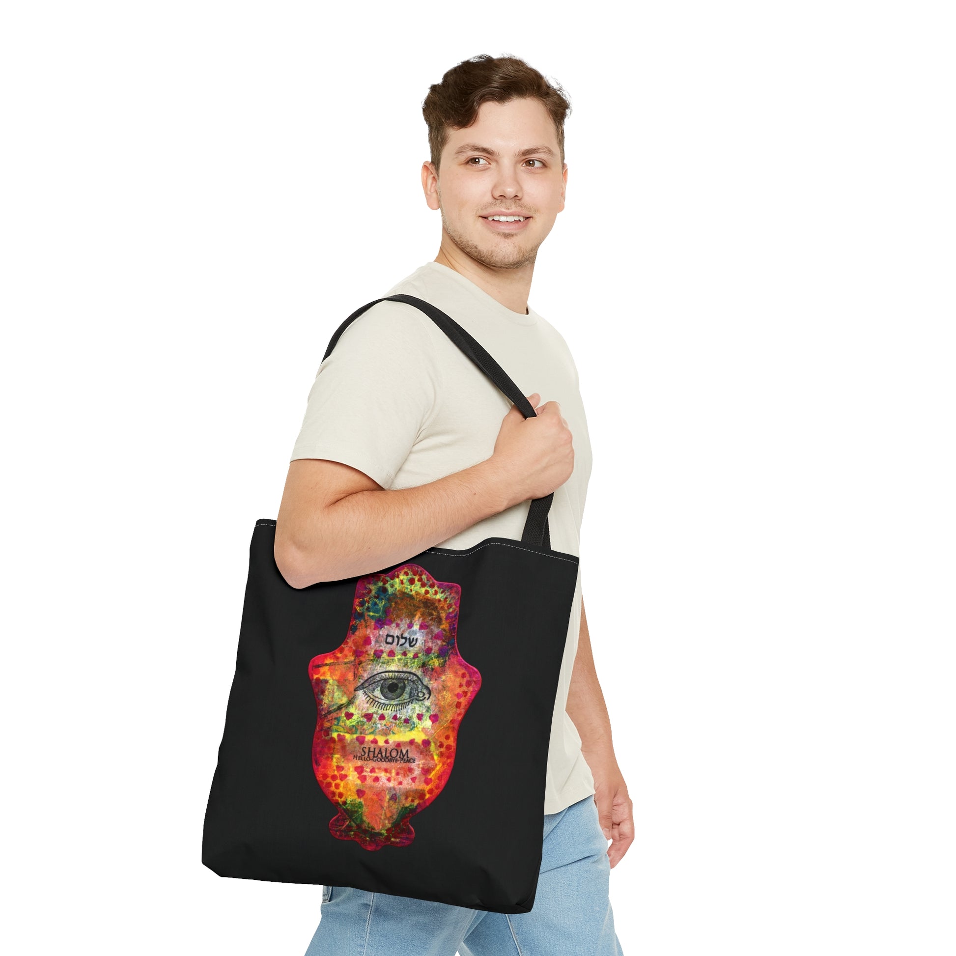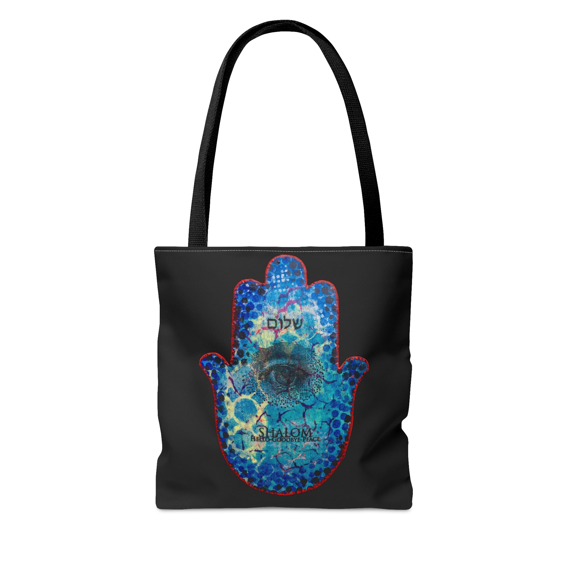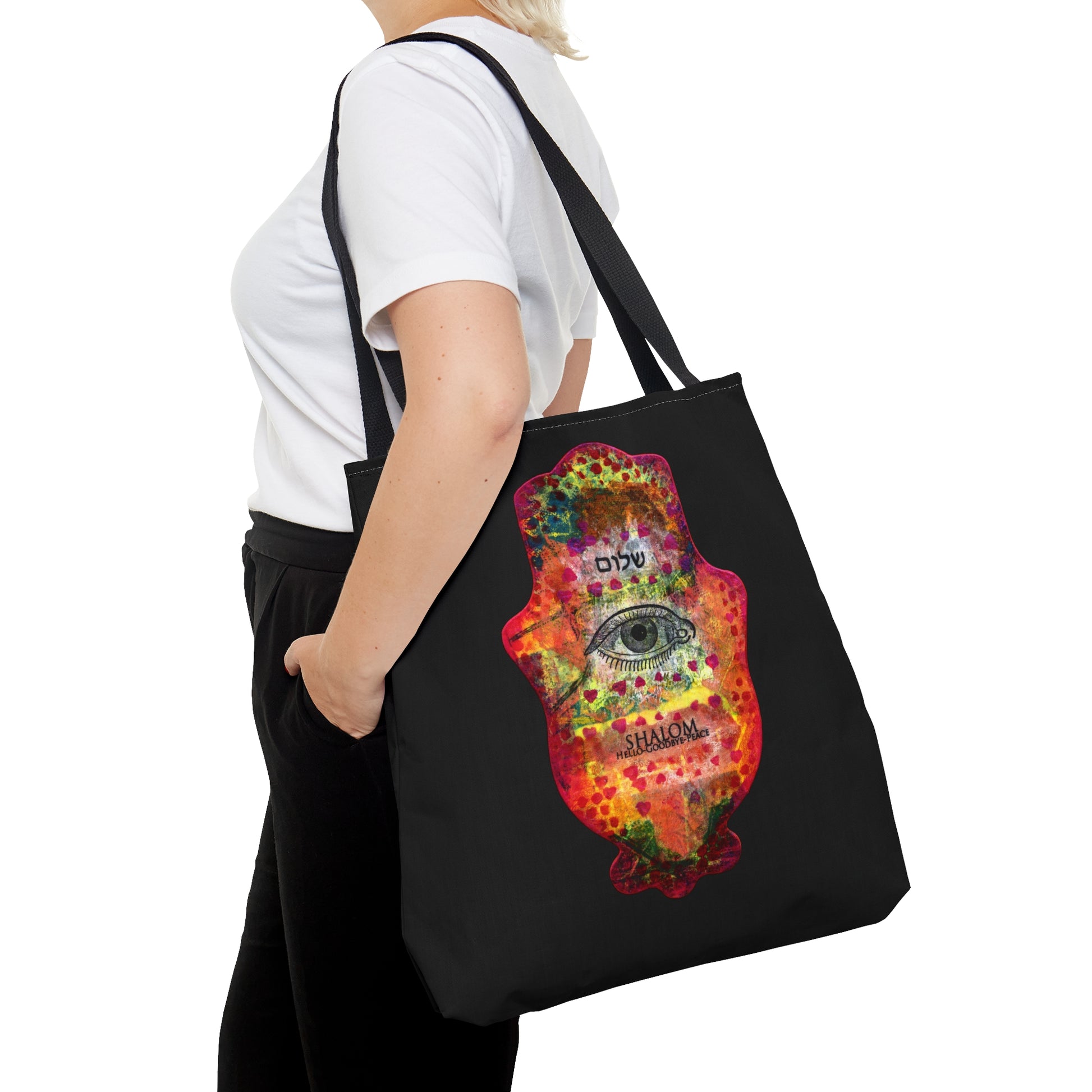 This practical, high-quality tote bag is printed with Esther Cohen's Hamsas on both sides. Available in three sizes. All-over print provides comfort with style when you're out in town. Made from quality materials, it will last you for seasons.