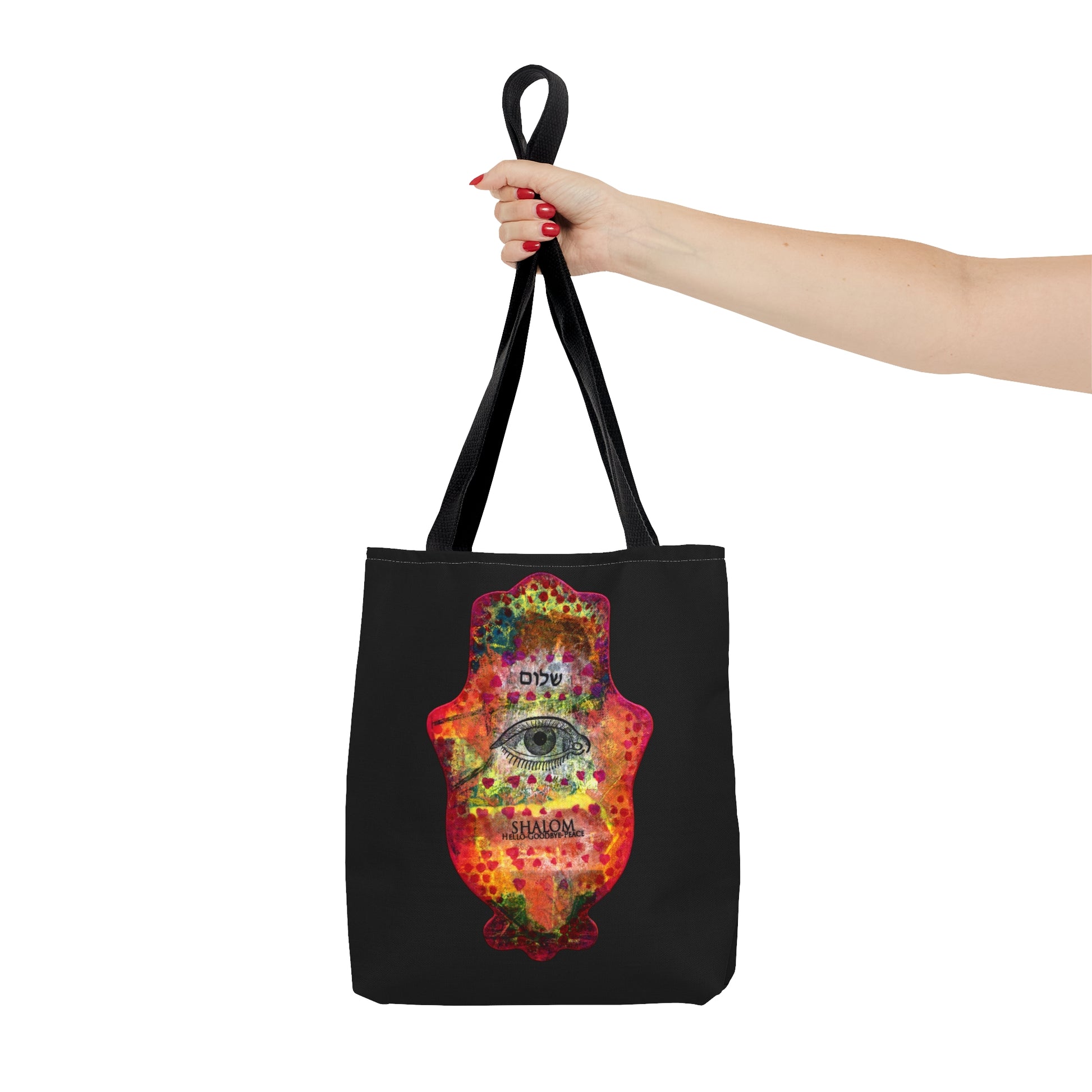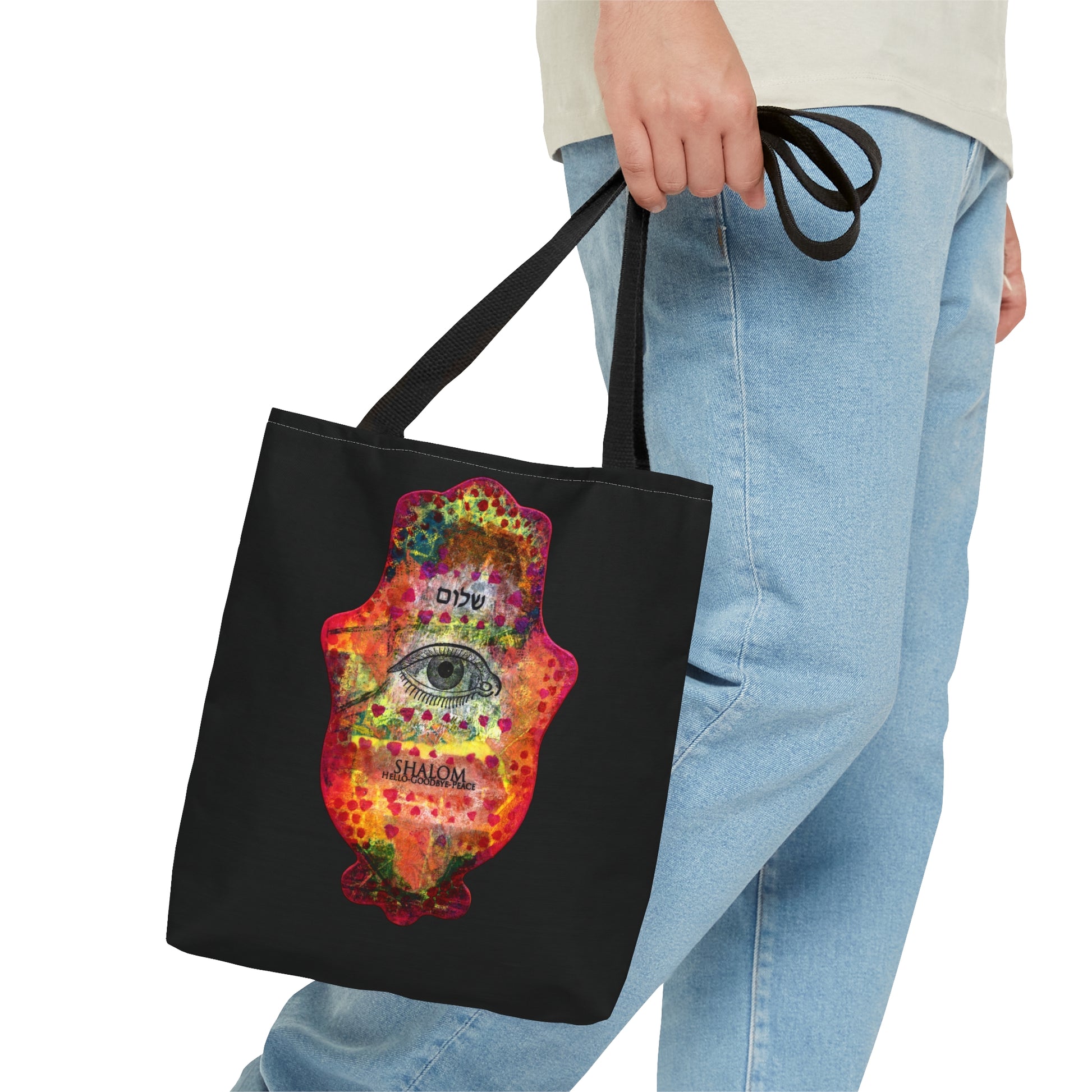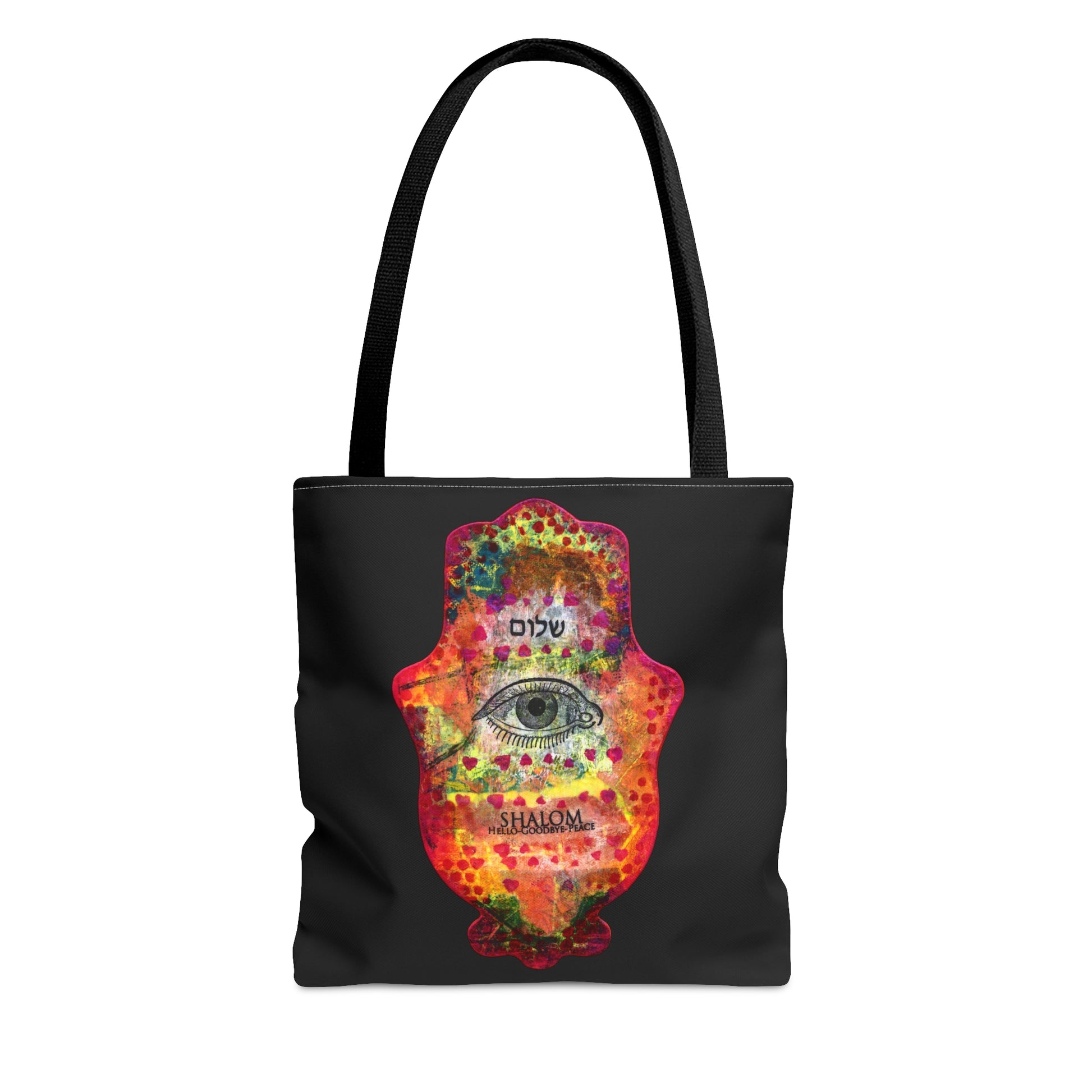 This practical, high-quality tote bag is printed with Esther Cohen's Hamsas on both sides. Available in three sizes. All-over print provides comfort with style when you're out in town. Made from quality materials, it will last you for seasons.