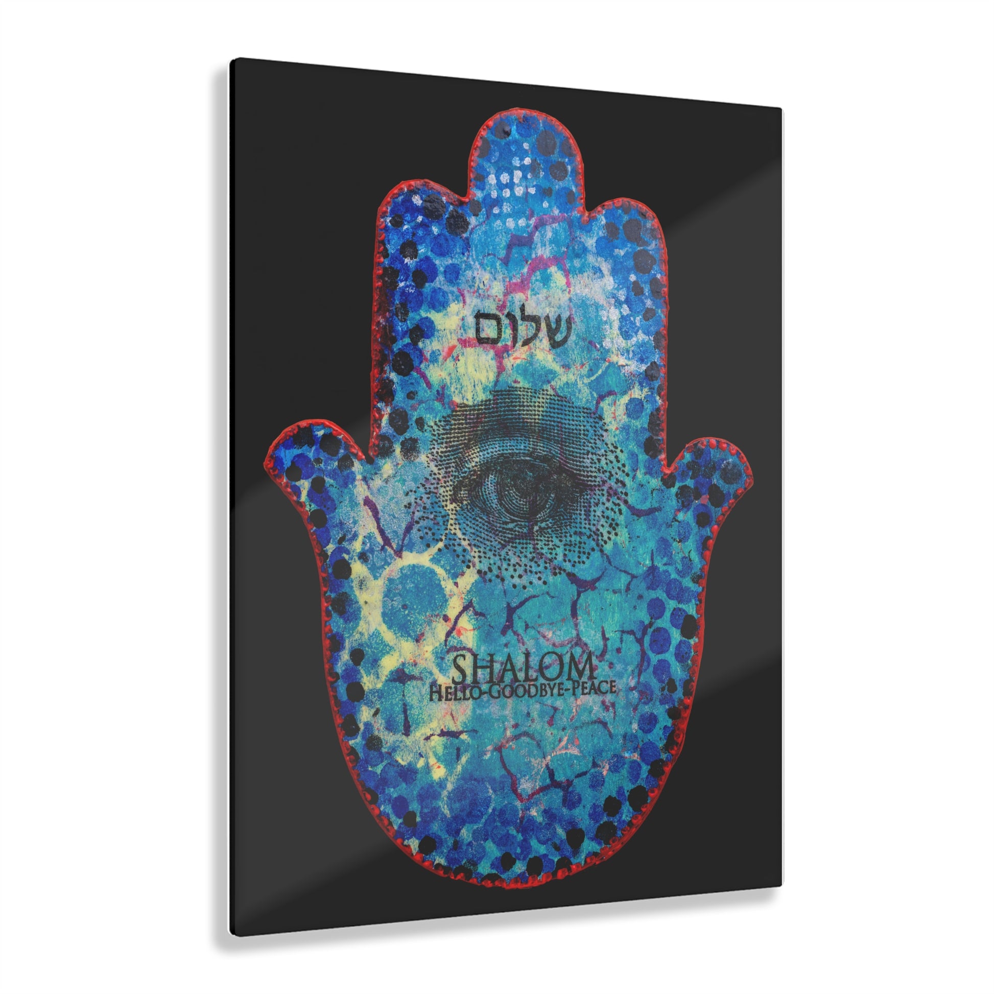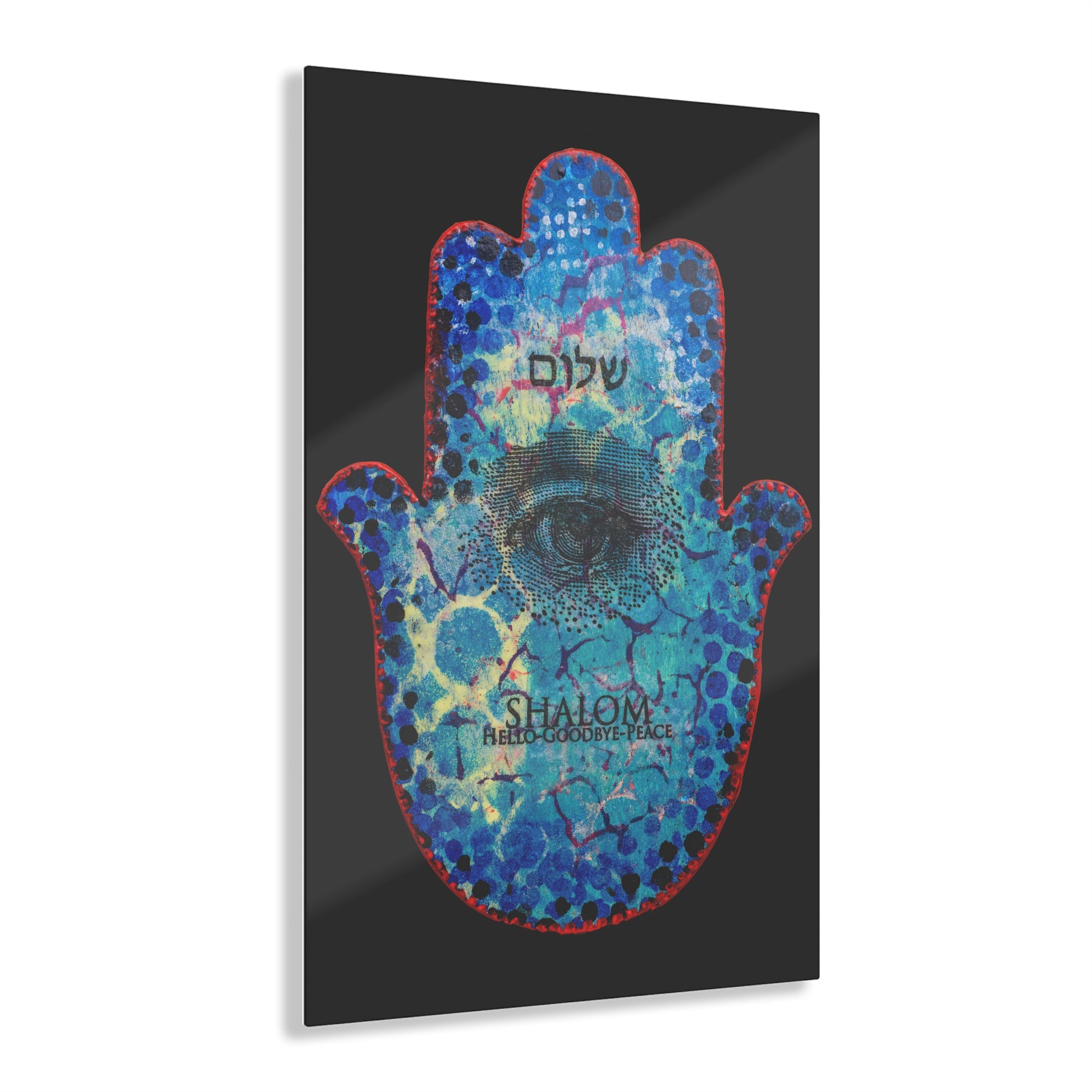 Immerse yourself in the contemporary allure of Esther Cohen's art with this glossy acrylic modern print featuring the iconic blue Hamsa—a Jewish symbol renowned for protection. Cohen's mastery of mixed media printmaking techniques is evident in this vibrant piece, where layers of color and texture coalesce to create a visually stunning representation. The glossy acrylic enhances the brilliance of the artwork, elevating it to a captivating focal point. Cohen's fusion of modern aesthetics and traditional symbolism makes this piece not just an artwork but a statement of cultural significance. Add a touch of elegance and meaning to your space with this modern art print, where Esther Cohen's expertise transforms the Hamsa into a timeless and visually striking masterpiece.