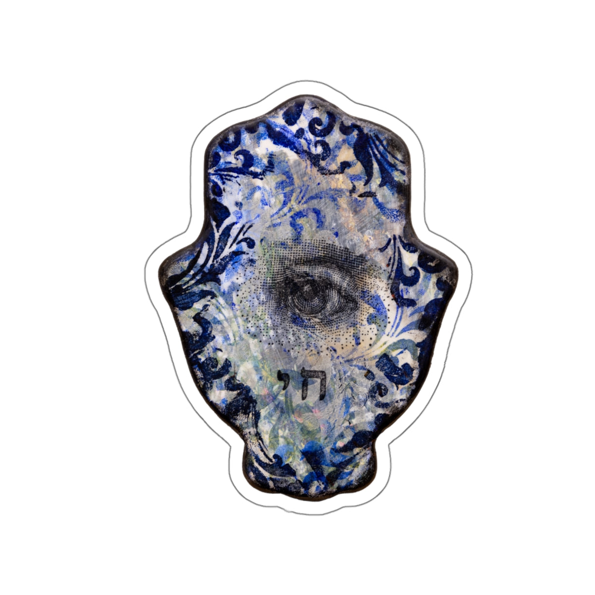 "Hamsa in Blues II" Die-Cut Sticker by Esther Cohen