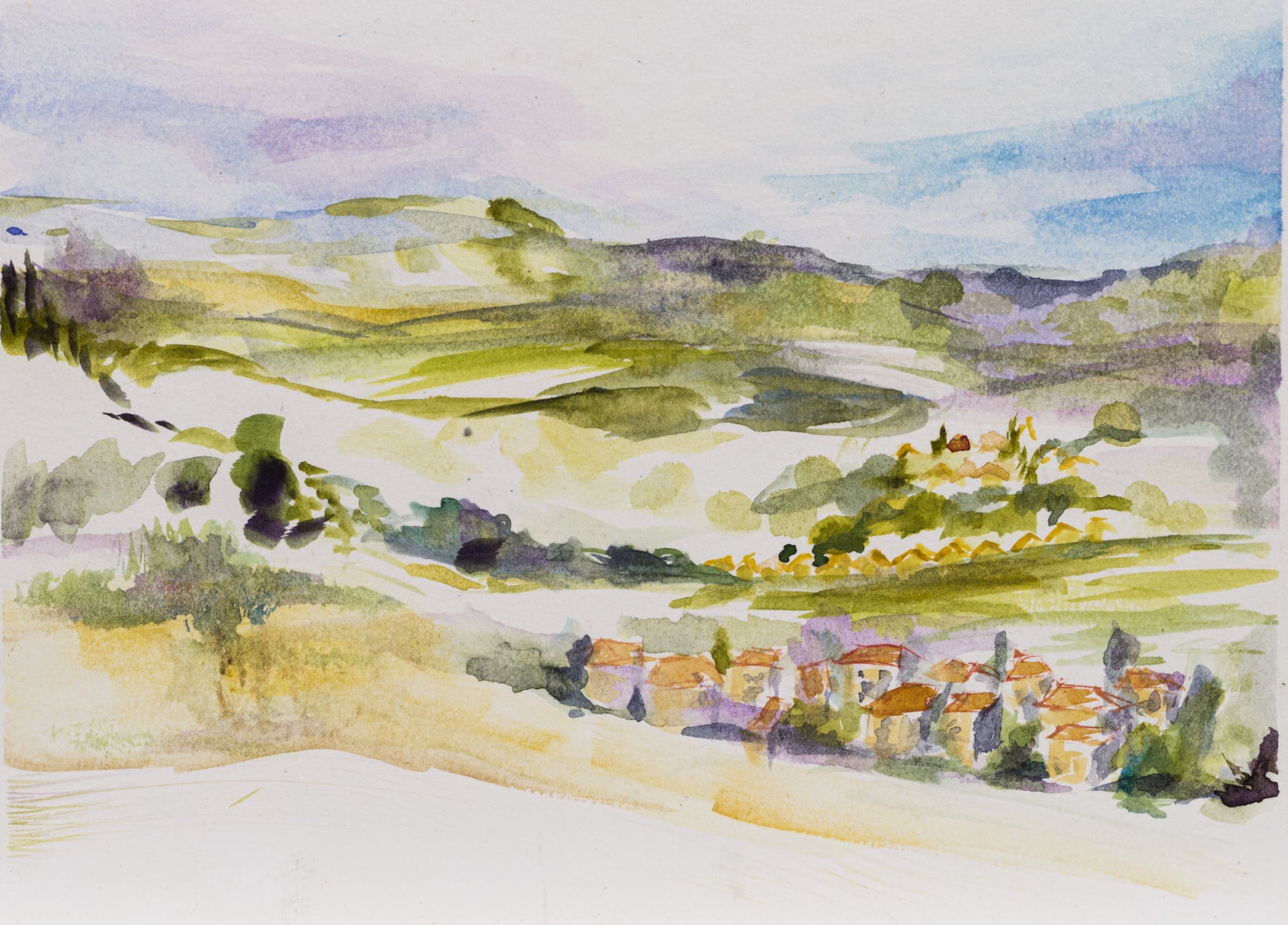 Giclée print of painting "Summer Evening Stroll in Israel" on archival paper (Moab's Somerset Enhanced Velvet - with a slightly textured matte surface) with a 1" border.