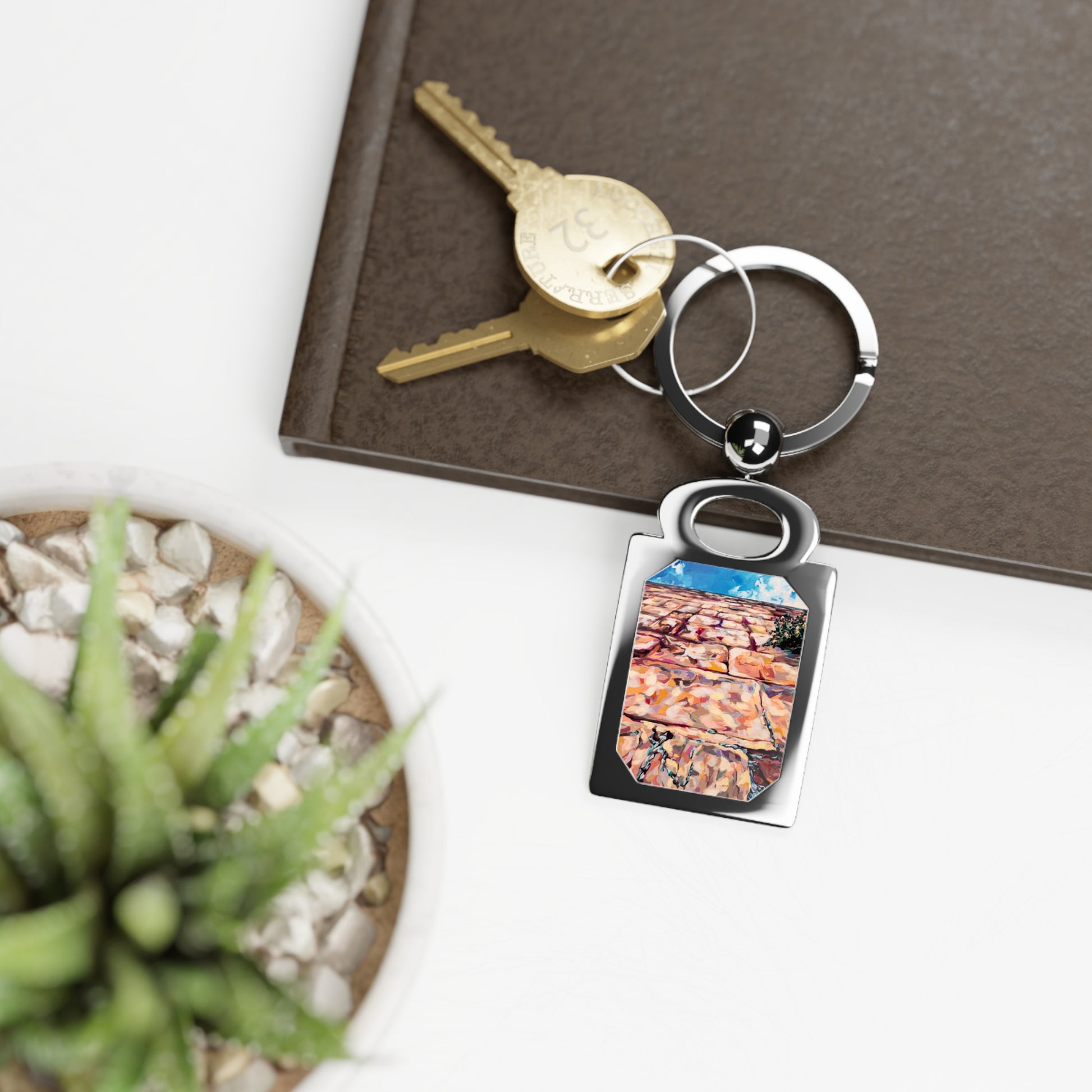 Kotel from Below III by Leah Luria Rectangular Keyring