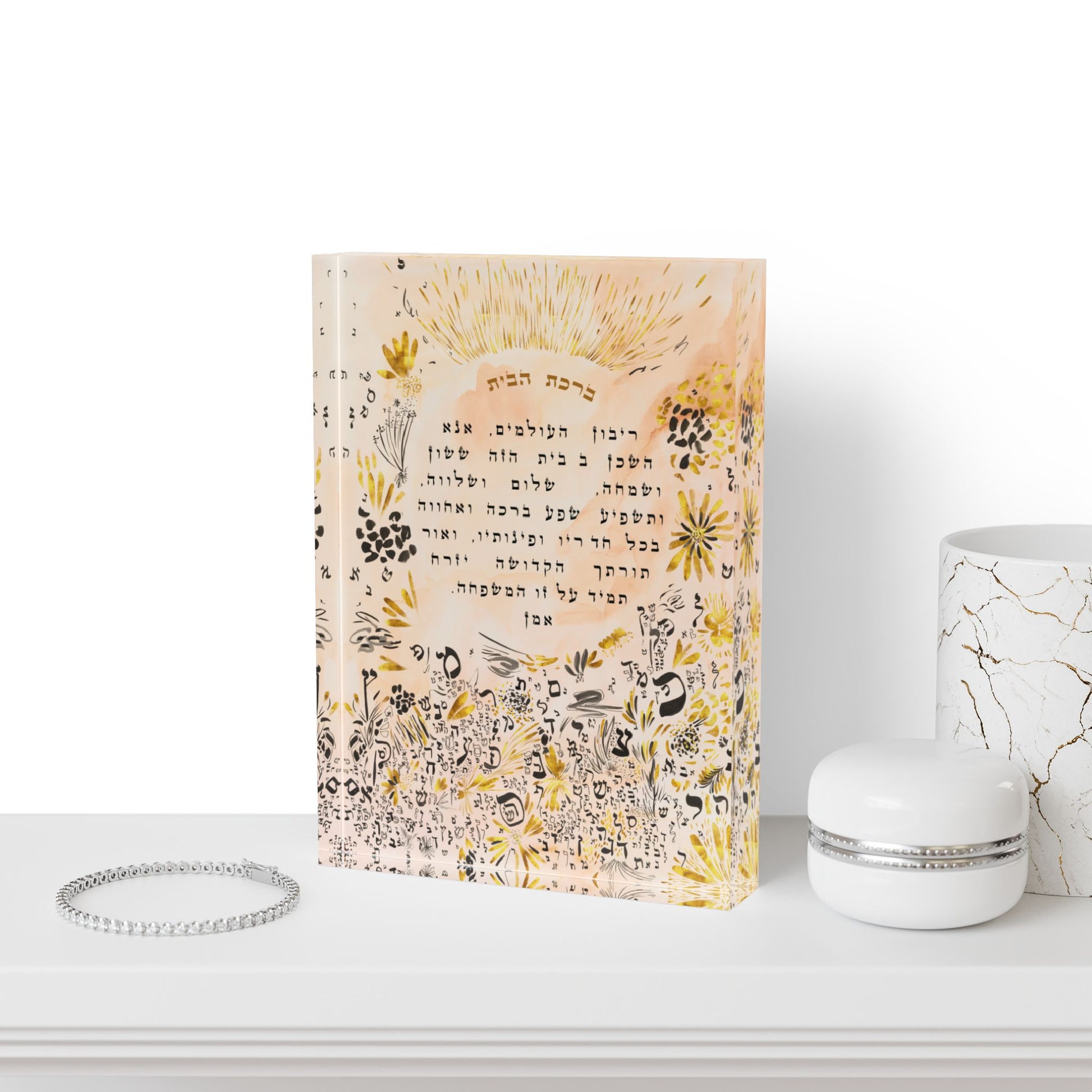“Letters of Light” by Avigael Tondowski – Hebrew Home Blessing Acrylic Block Art Print
