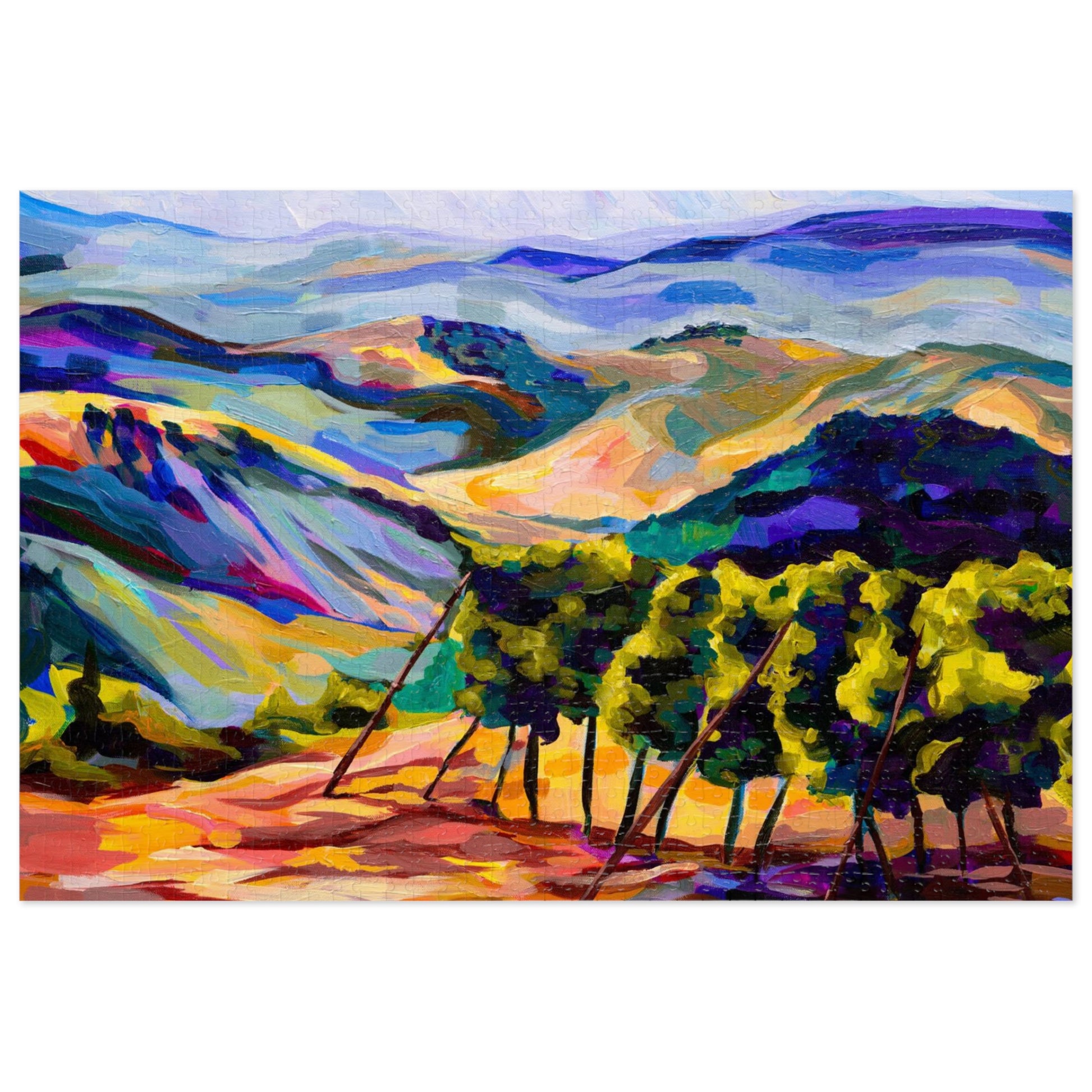 A unique jigsaw puzzle created from my landscape painting of the rolling hills outside Jerusalem.