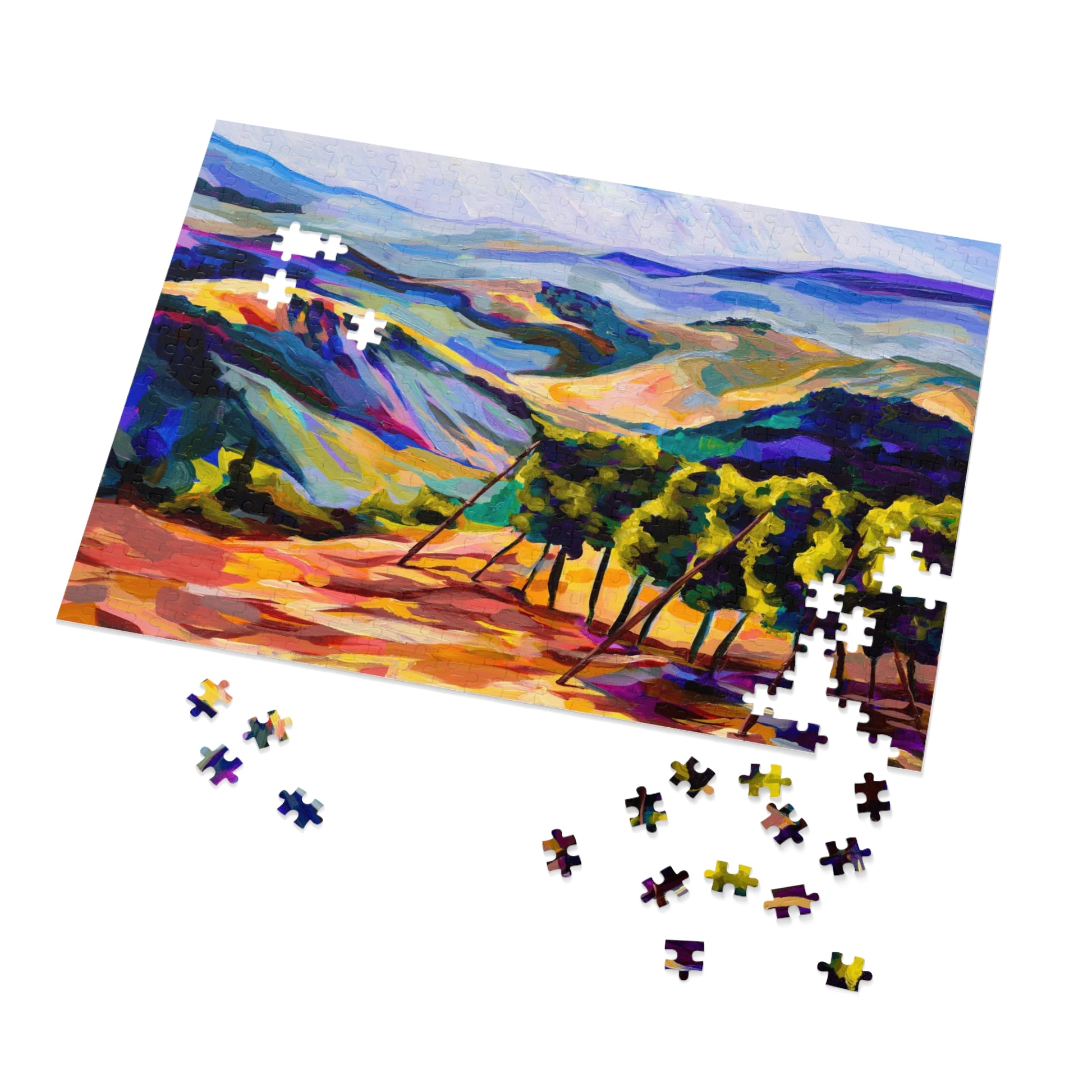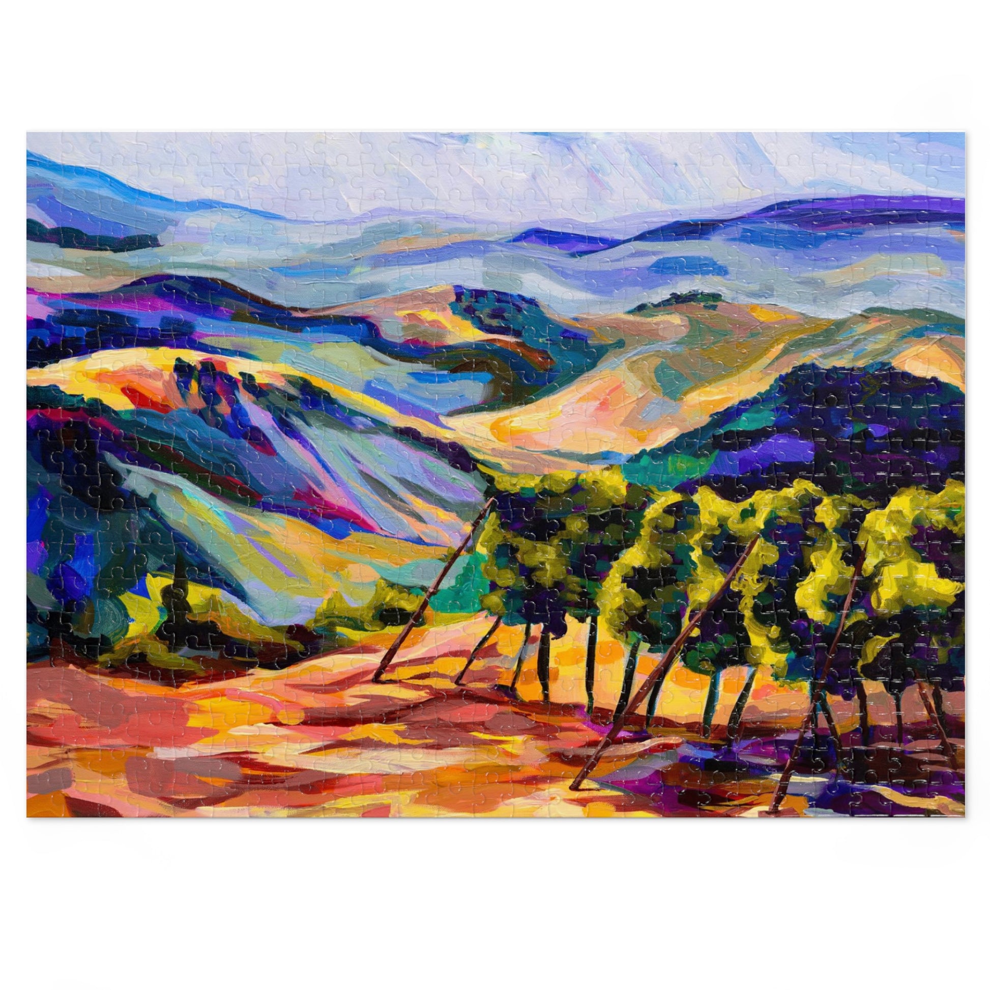 A unique jigsaw puzzle created from my landscape painting of the rolling hills outside Jerusalem.