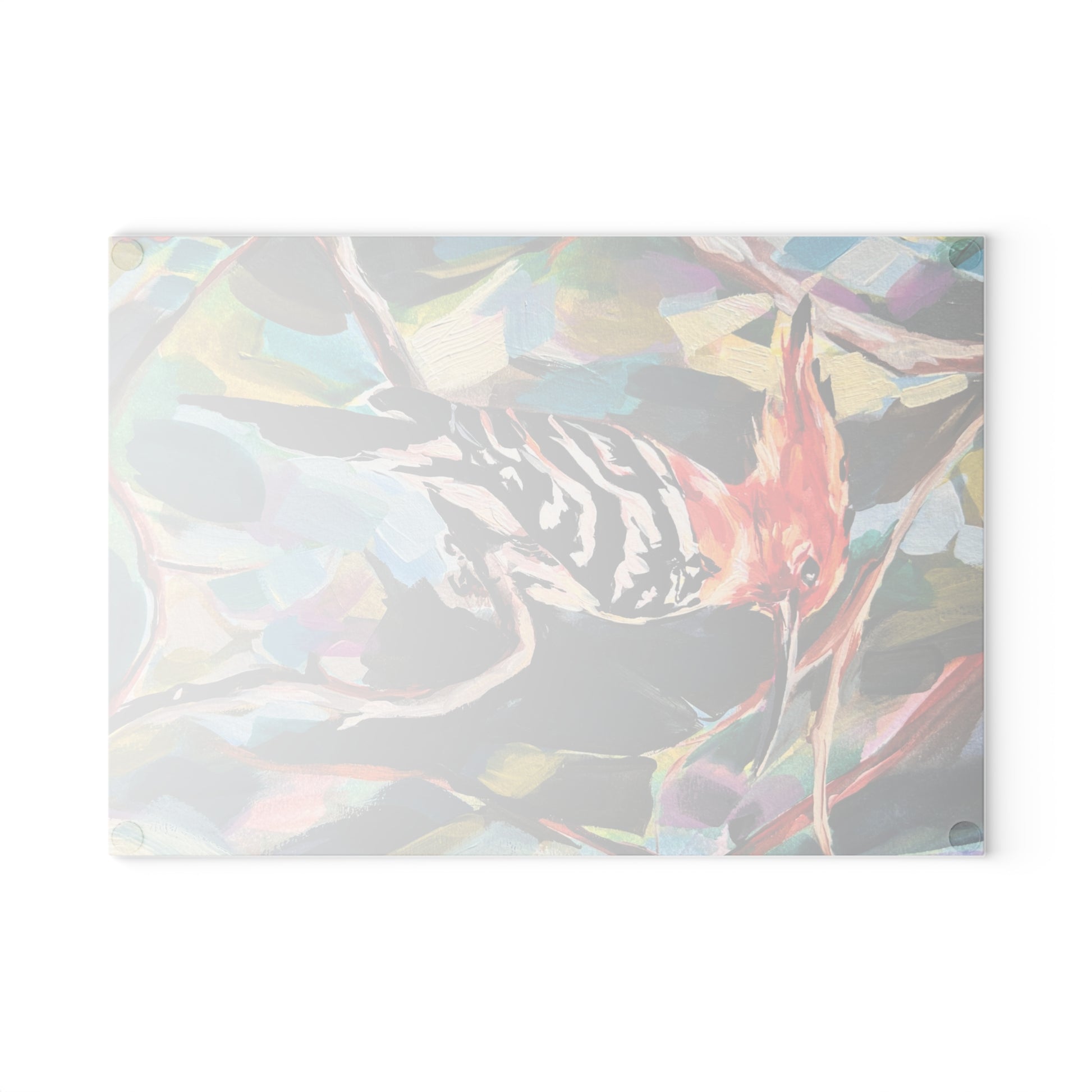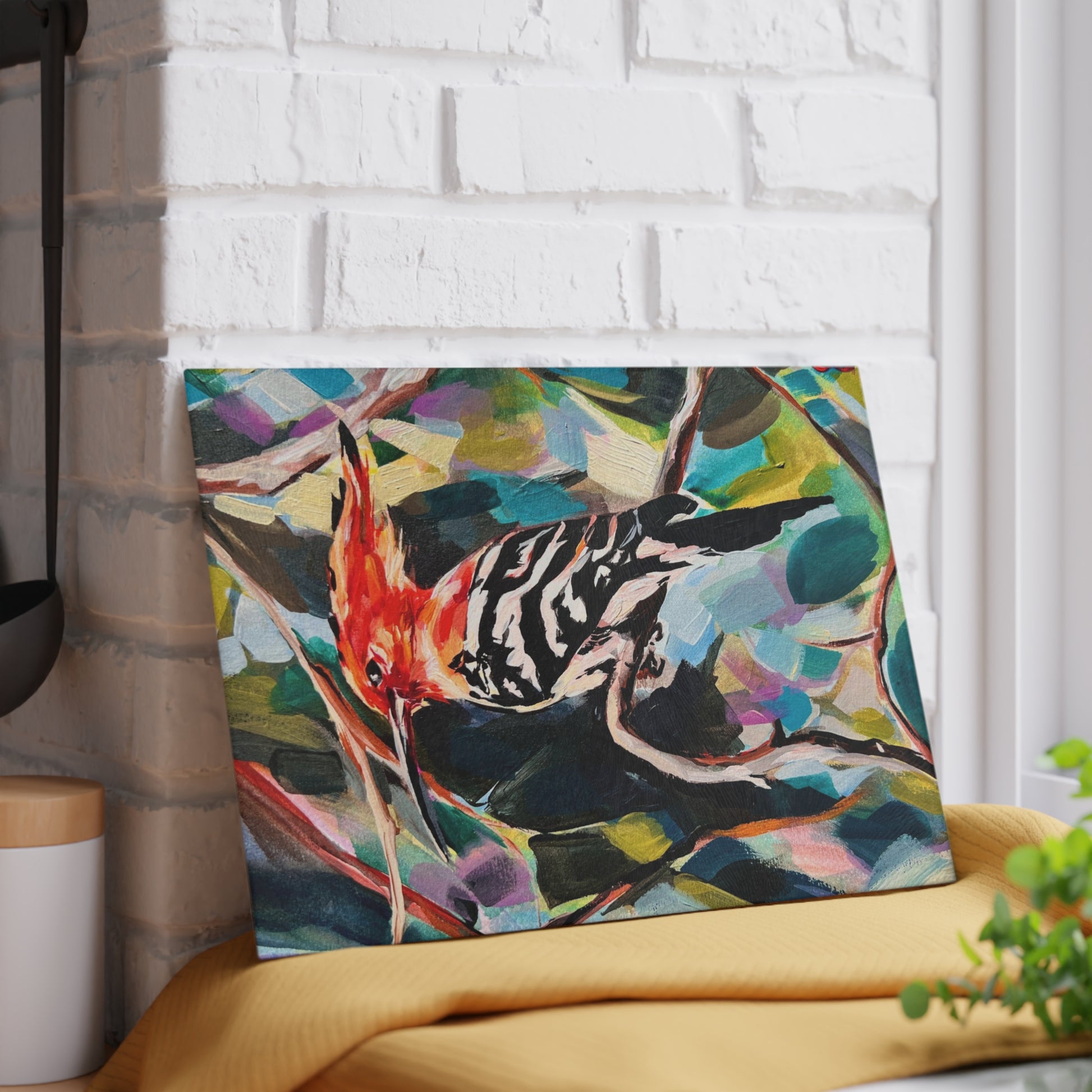 Bring a touch of Israel's natural beauty into your kitchen and elevate your cooking experience with the Glass Cutting Board featuring the Hoopoe bird. Let the painterly strokes and vibrant colors invigorate your culinary creations and infuse your kitchen with the spirit of art..: Comes in 2 sizes: (8″ × 11″) (20.3cm × 27.9cm) or (11″ × 15″) (27.9cm × 38.1cm)
