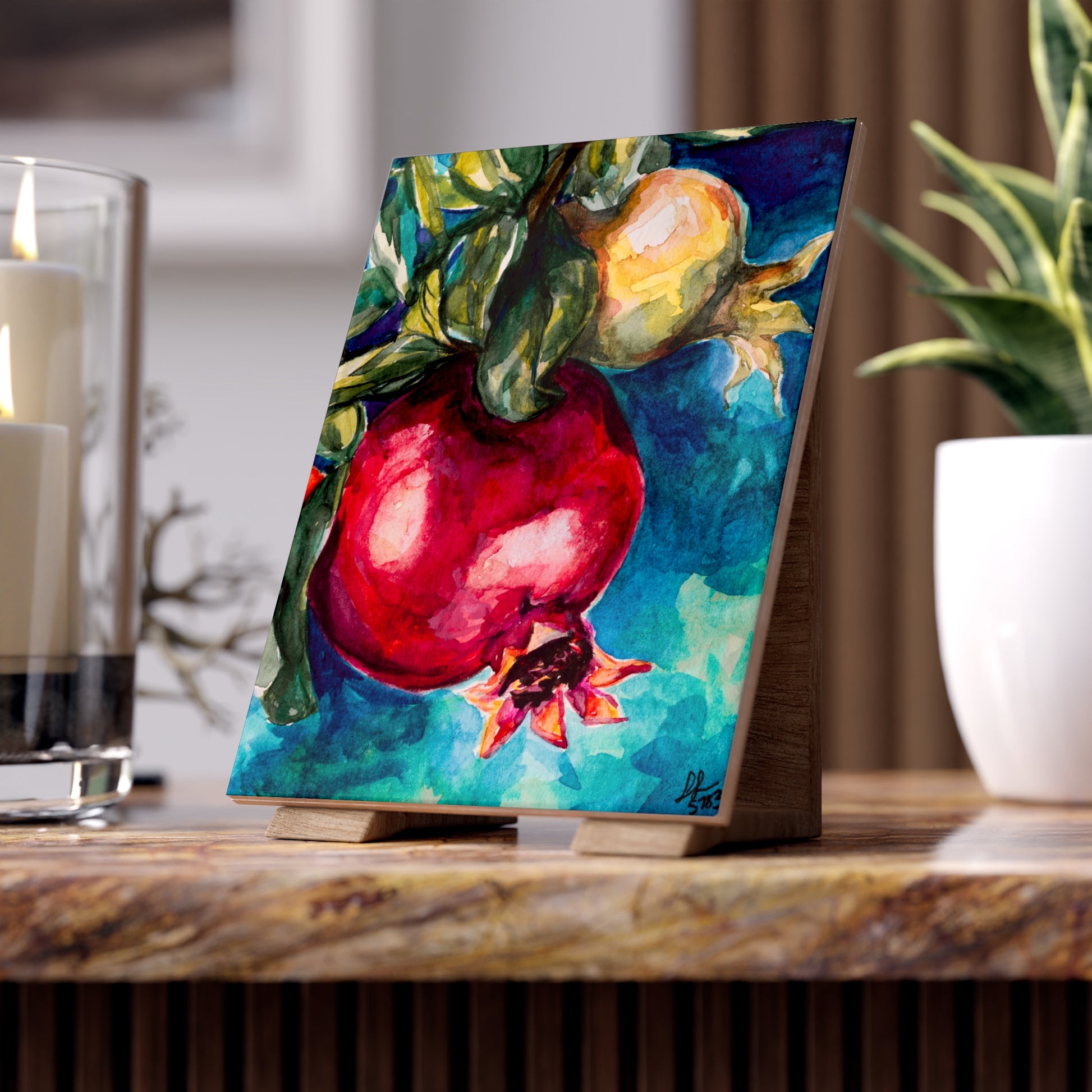 Painted Pomegranates by Leah Luria Ceramic Tile