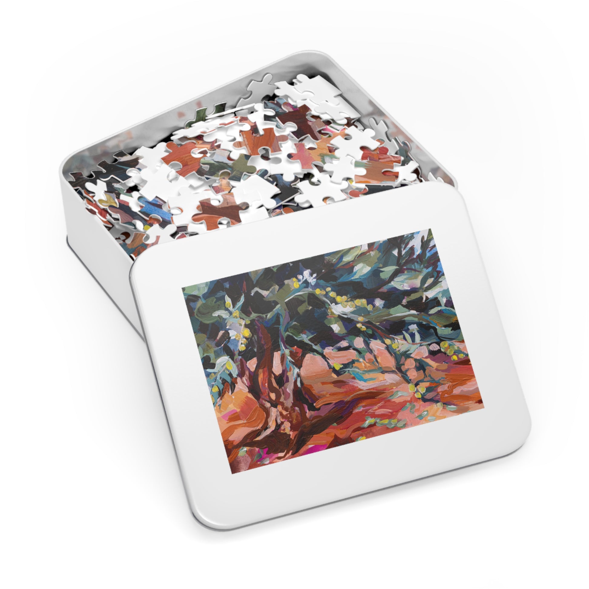 Once completed, this puzzle transforms into a work of art that can be proudly displayed and framed in your home. Allow the sacred Olive tree to become a centerpiece, radiating serenity and a deep connection to the Land. Its lush emerald colors and painterly brushstrokes will envelop your space, creating an atmosphere of tranquility and awe.