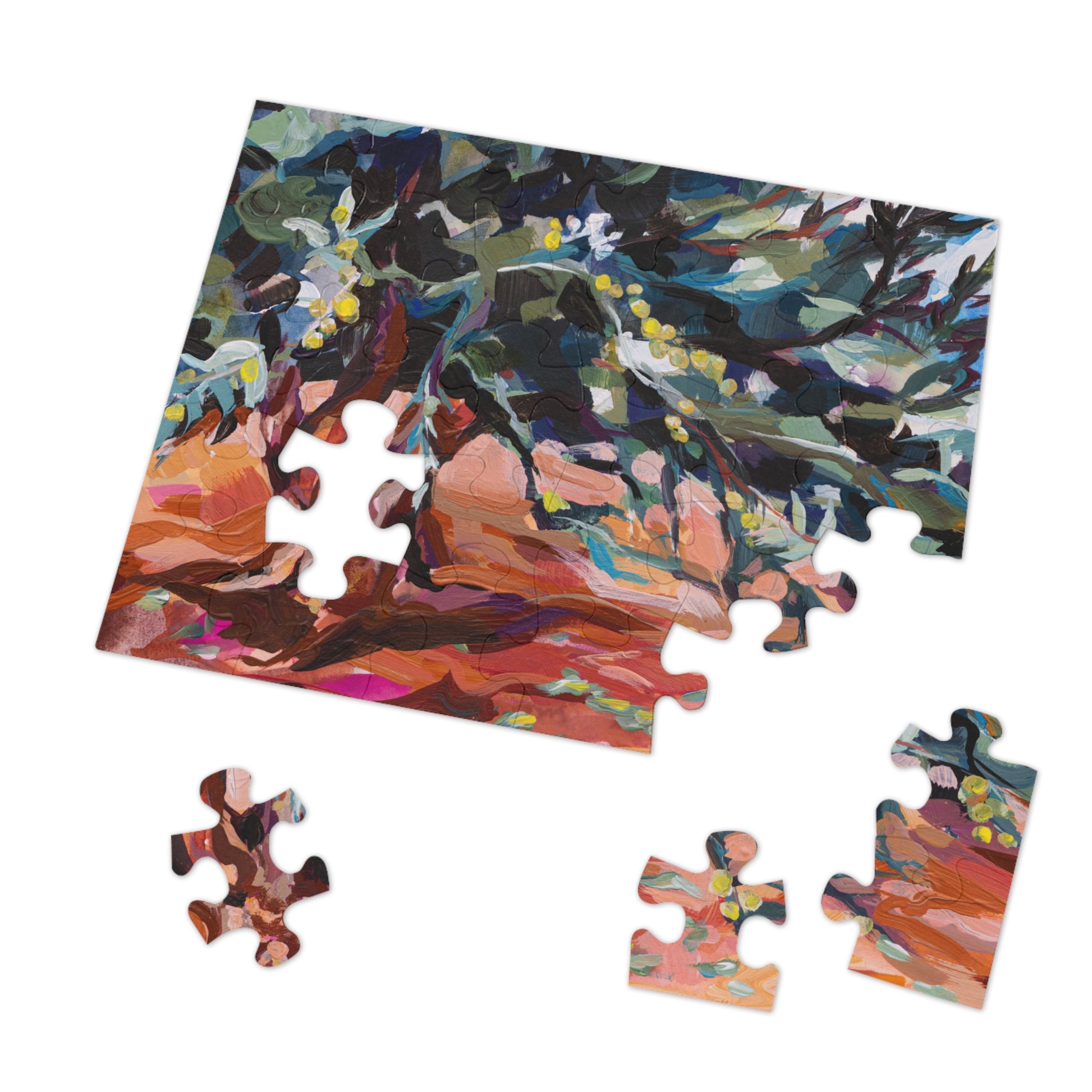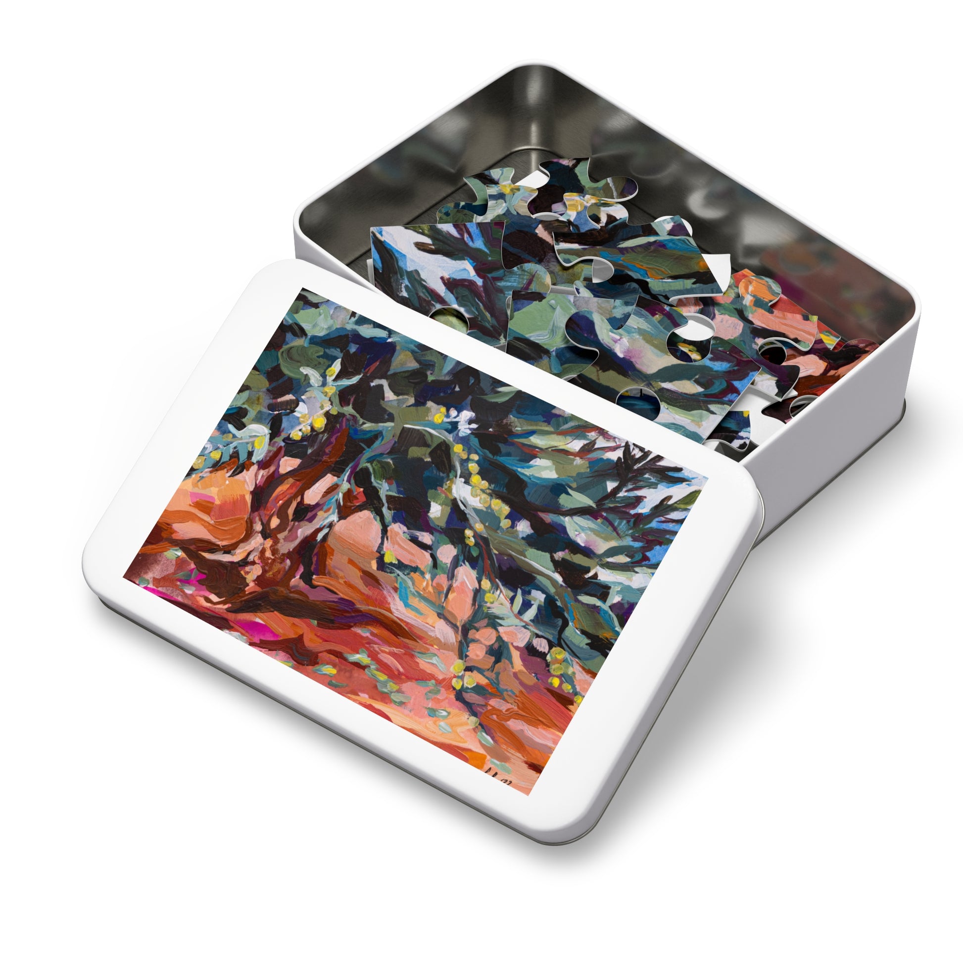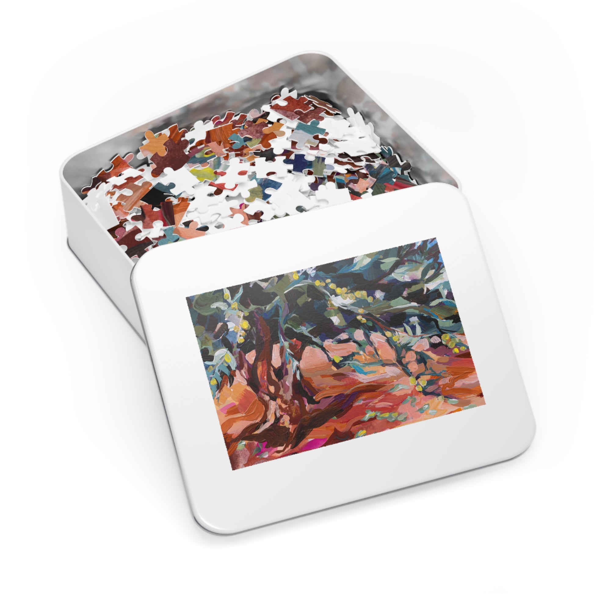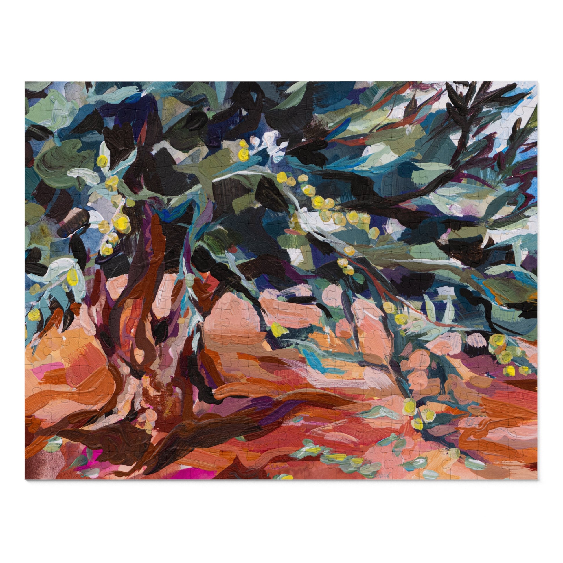 Introducing another fun Painted Puzzle by Leah Luria, an exquisite combination of artistry and family bonding. Immerse yourself in the captivating experience of assembling this fine art puzzle, where each piece becomes a connection to the sacred beauty of the ancient Olive trees of Israel.