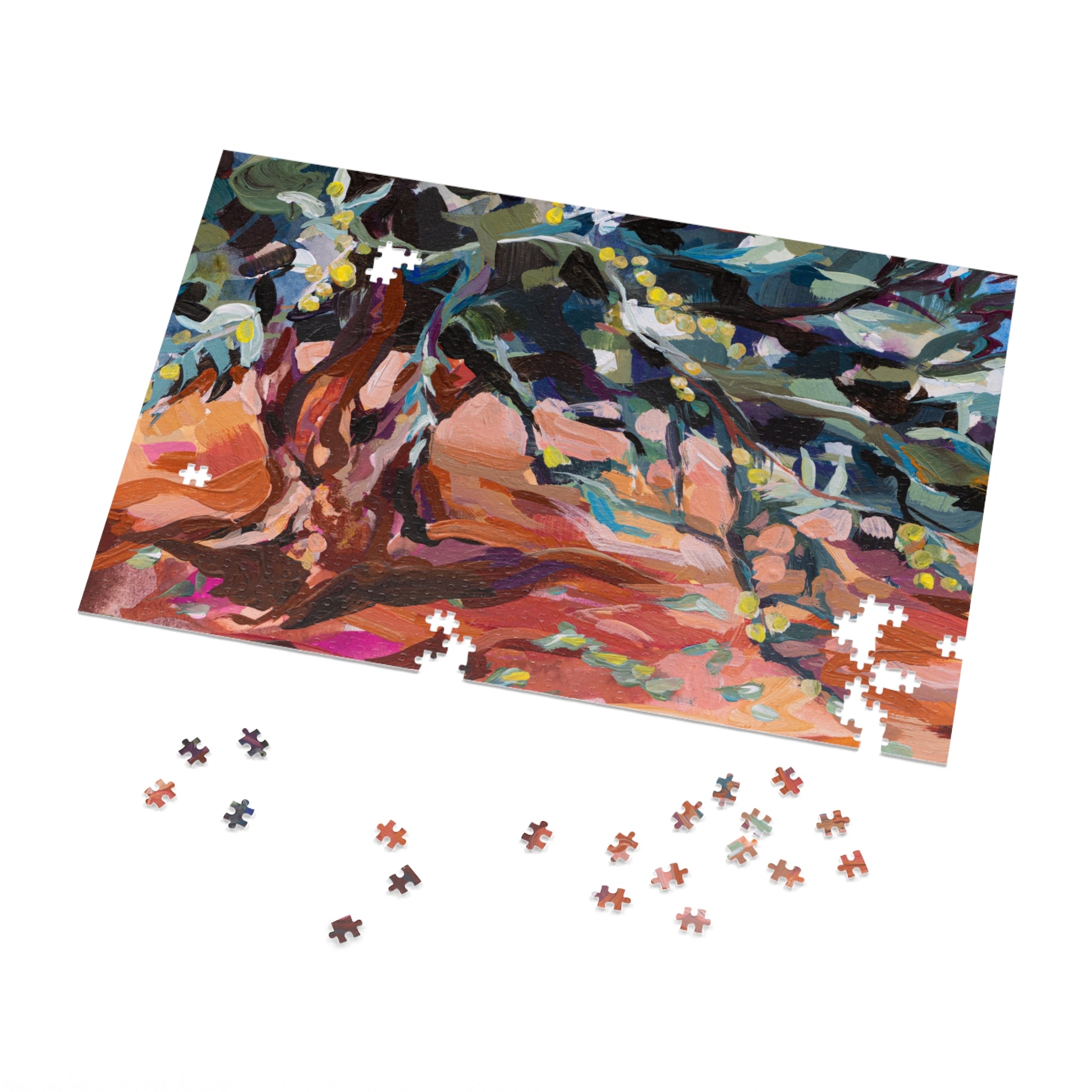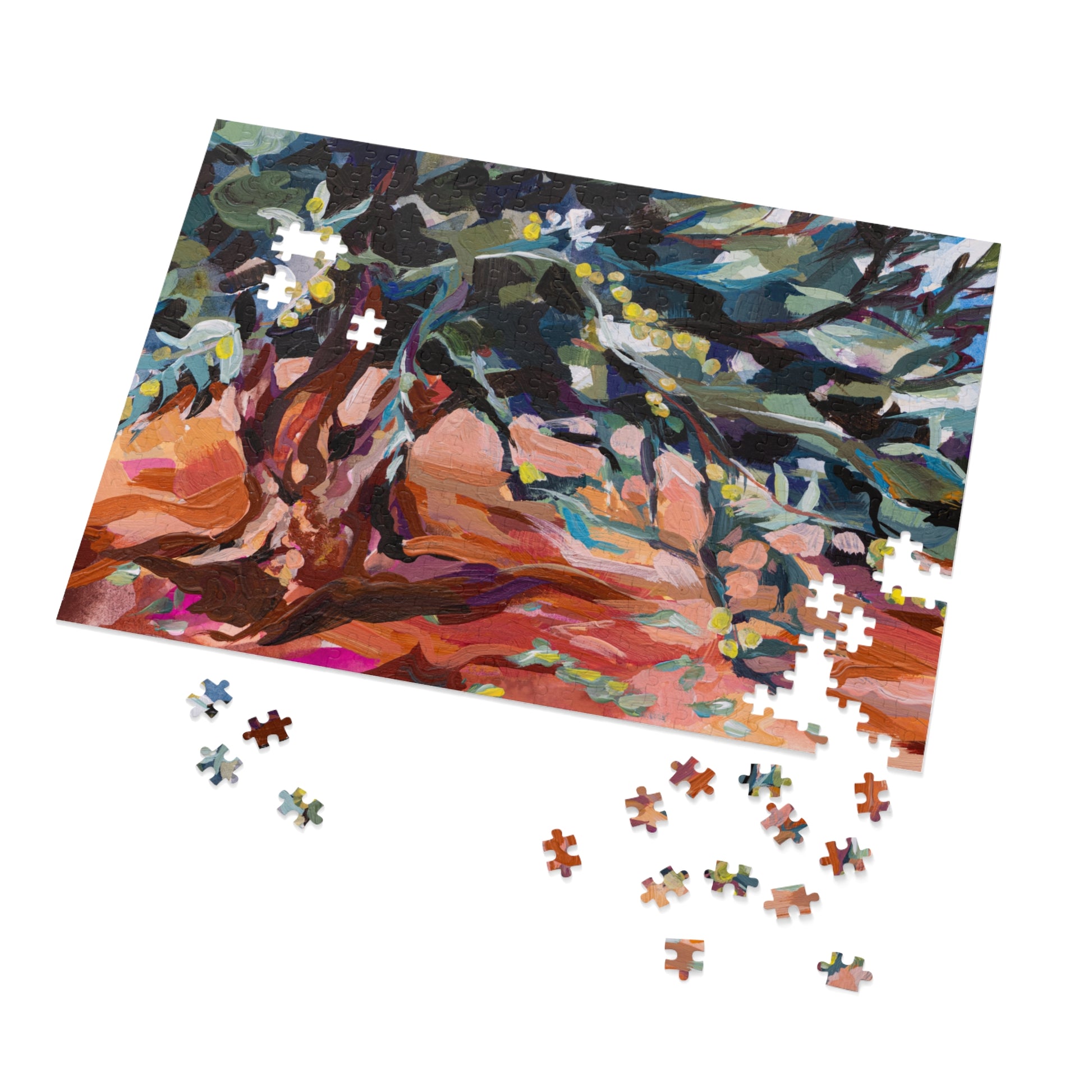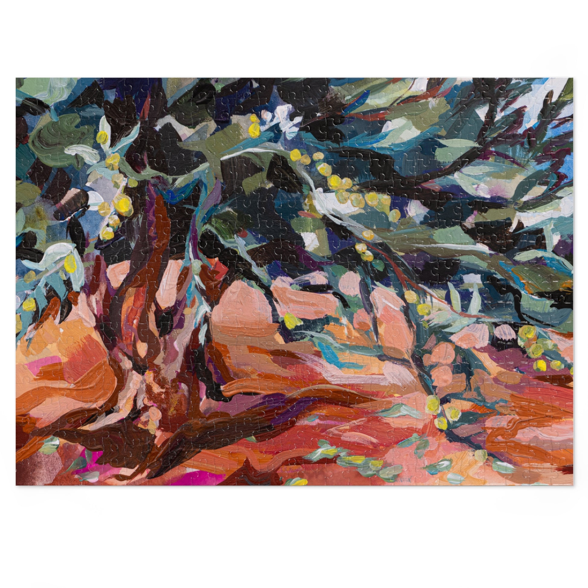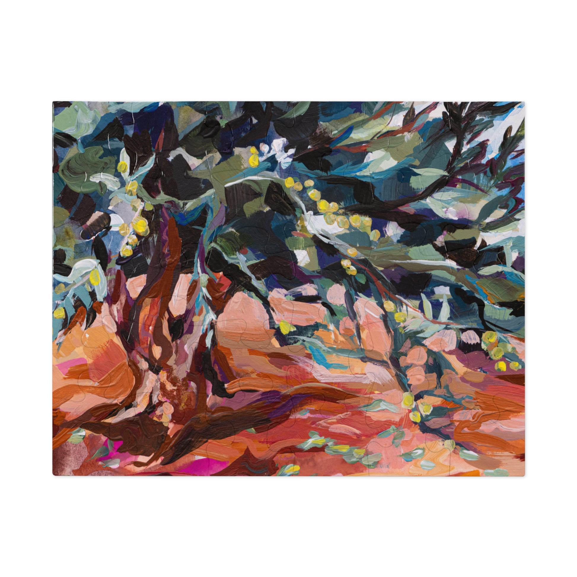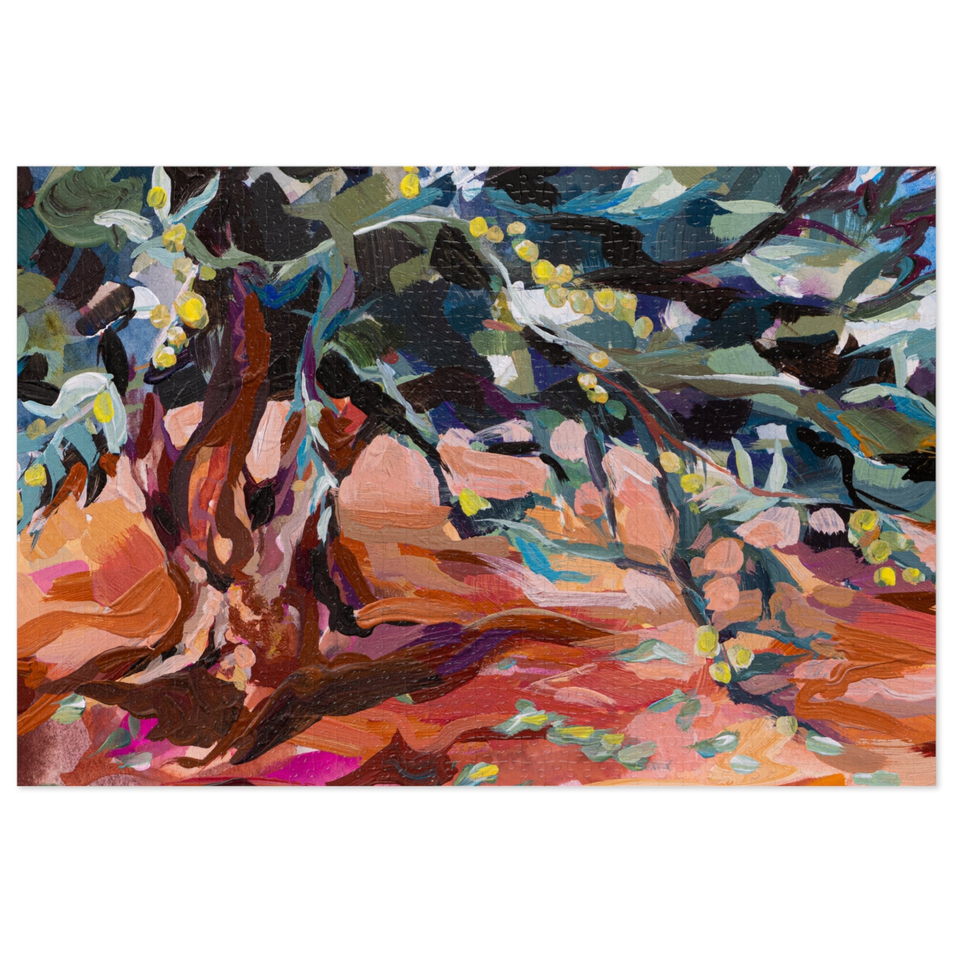 Inspired by Leah Luria's painting, "Portrait of an Ancient Olive Tree," this puzzle breathes life into the lush colors, vibrant greens, and earthy tones that adorn the majestic Olive tree. With each brushstroke, the essence of resilience, wisdom, and spirituality is conveyed, reminding us of the rich heritage that echoes through the ancient olive groves of Israel.
