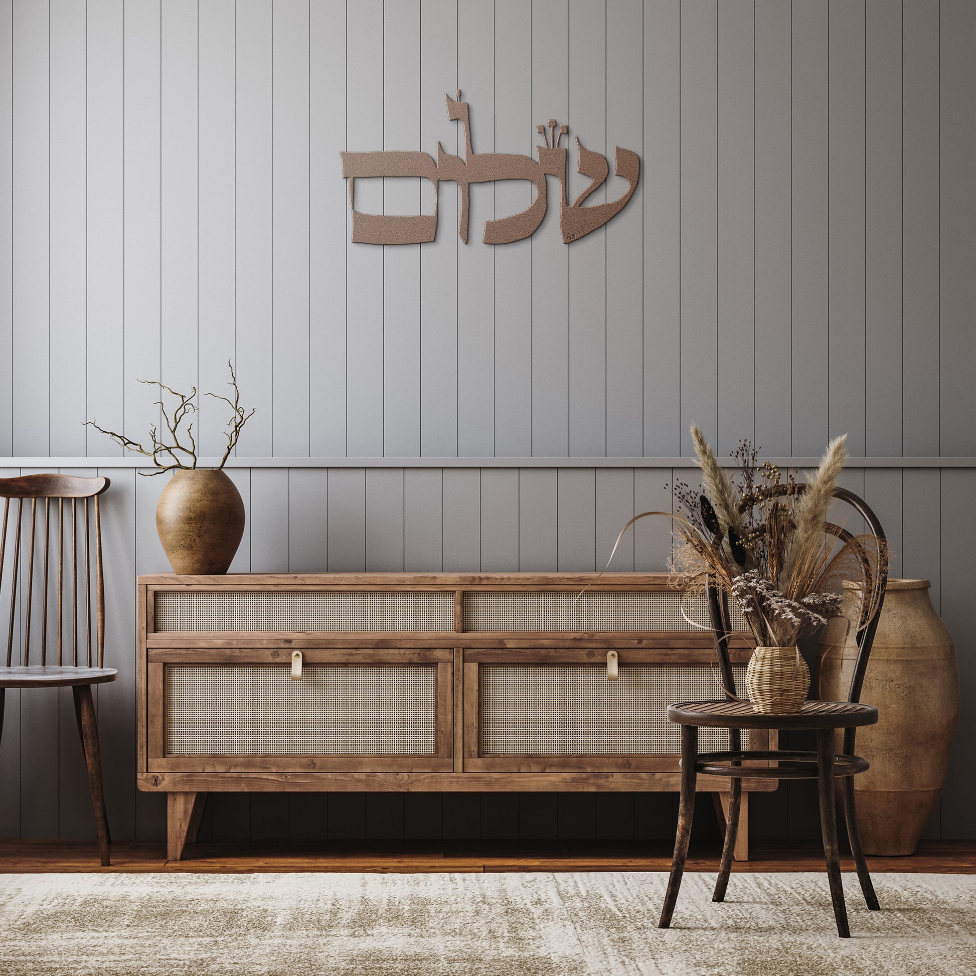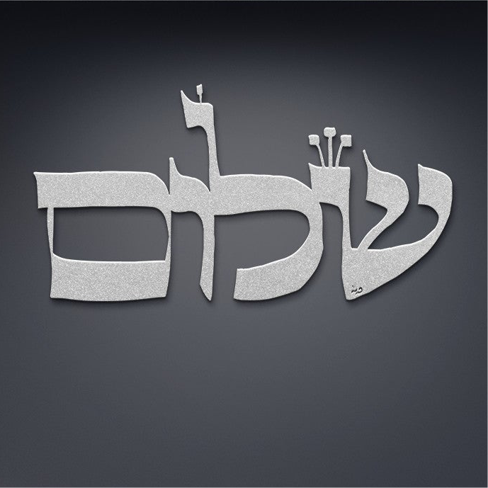 Elevate your home decor with a beautiful Shalom metal wall art sign, hand designed by Leah Luria.