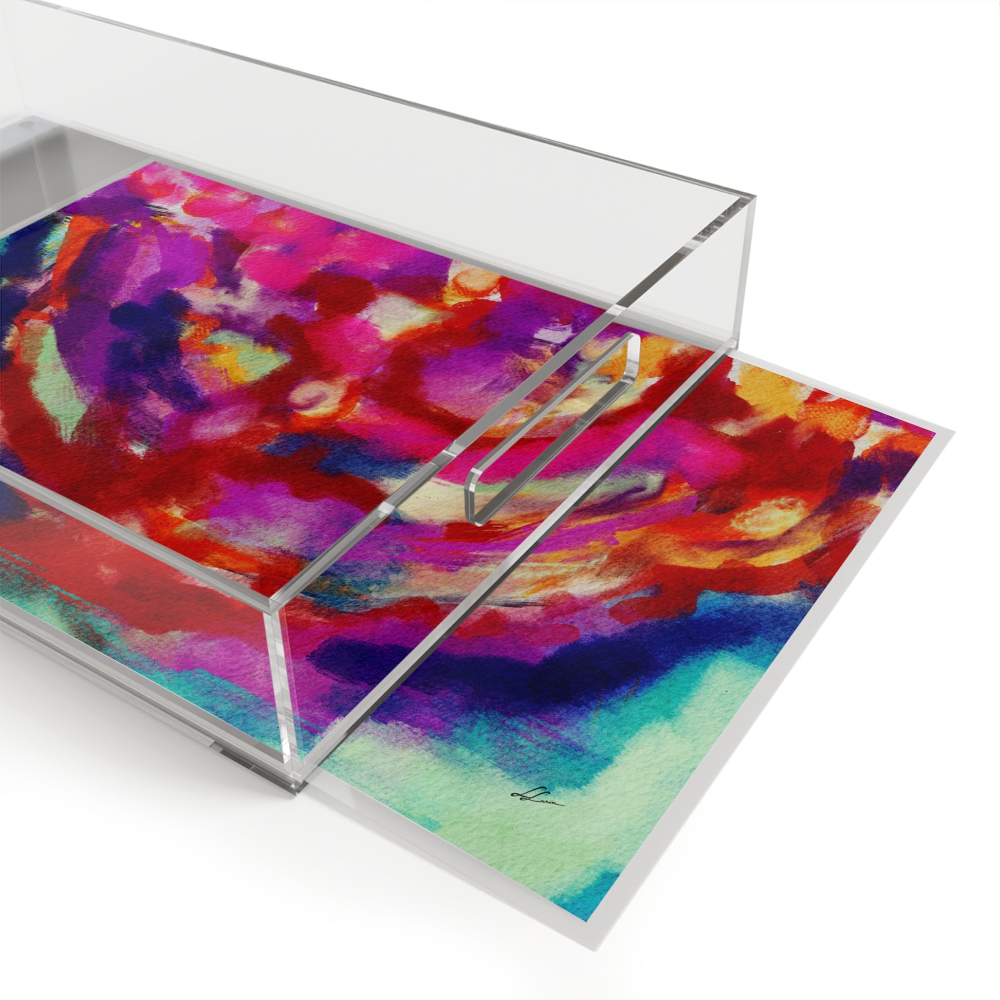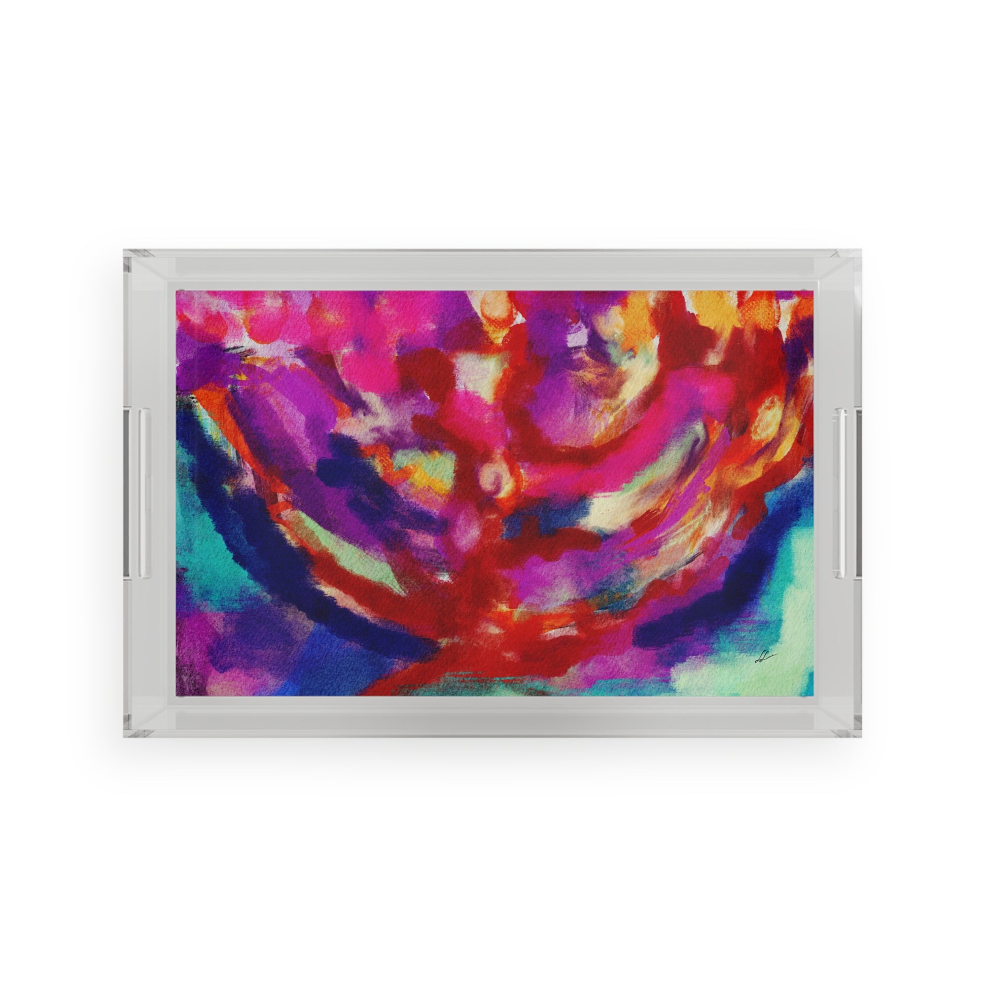 With Leah Luria's enchanting menorah painting, this acrylic tray becomes a visual celebration of the Festival of Lights, a meaningful addition to your Chanukah traditions, and a cherished piece that beautifully merges art and Judaica in one captivating package.