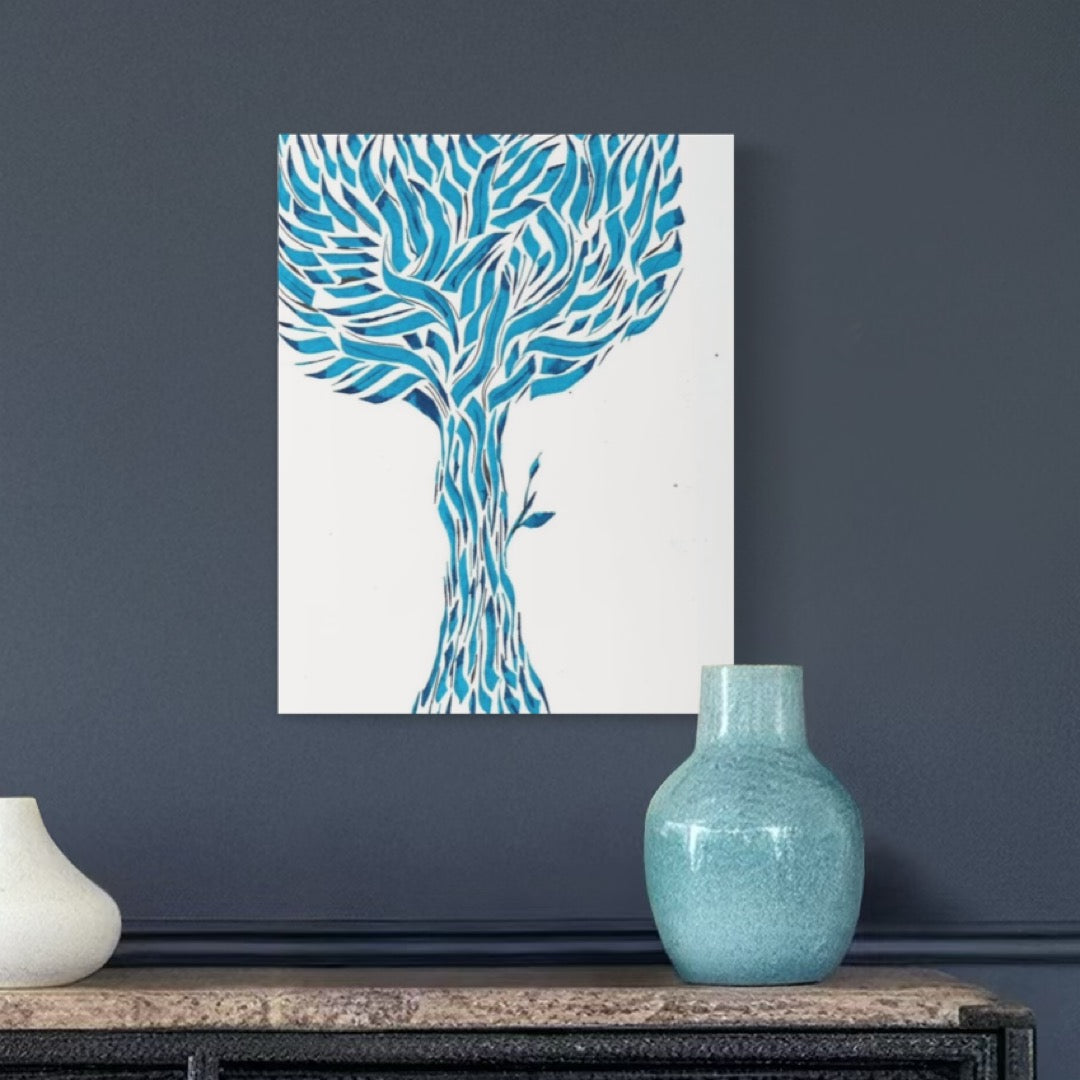 A mesmerizing fusion of nature and calligraphy, Tree of Life by Dov Laimon is a breathtaking exploration of form, movement, and spiritual symbolism. Rendered in deep, luminous blues, the tree emerges of Laimon’s signature calligraphic strokes, interwoven and creating a dynamic interplay of flowing lines and organic shapes. Each brushstroke evokes a connection,a sense of growth and wisdom of the tree.