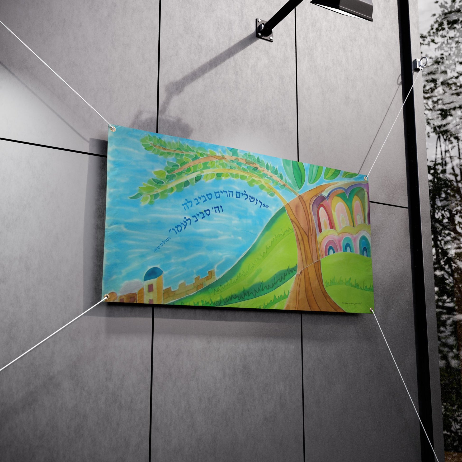 Yerushalayim, Mountains Around Her by Amy Rosen Sukkah Tapestry (waterproof)